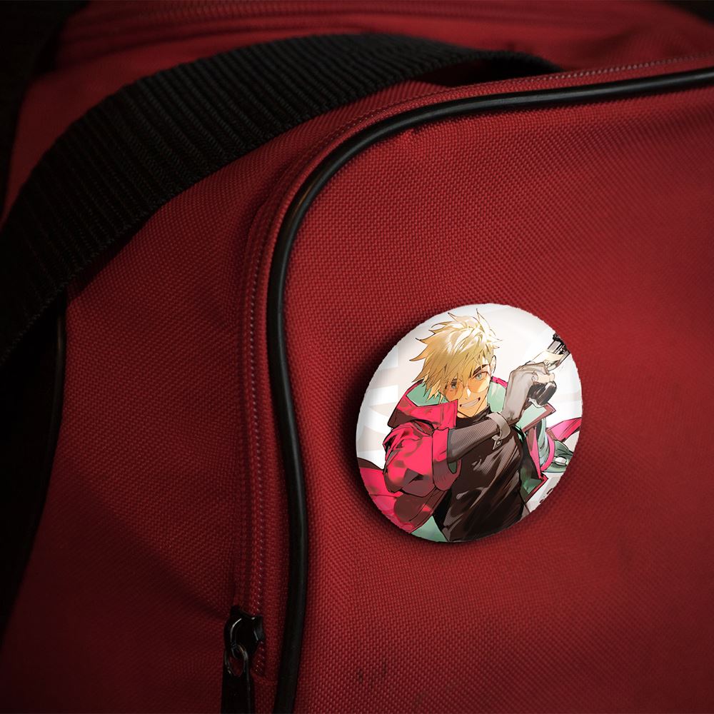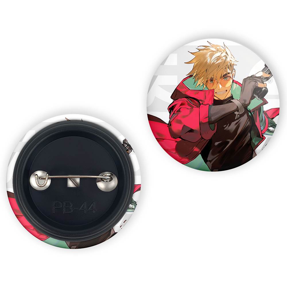 پیکسل 44 میلی متری وش انیمه تریگان (Trigun)خندالو با روکش سلفون حرارتی مات مخملی ضدخش و قطعه پشتی رنگی تولید شده است. قطعات پلاستیکی پشت پیکسل با سوزن یک تکه ثابت و بدون لغزش و جا به جایی، ایستایی بسیار بهتری نسبت به پشتی فلزی پیکسل دارند که این مهم در تولید این محصول نیز رعایت شده است.