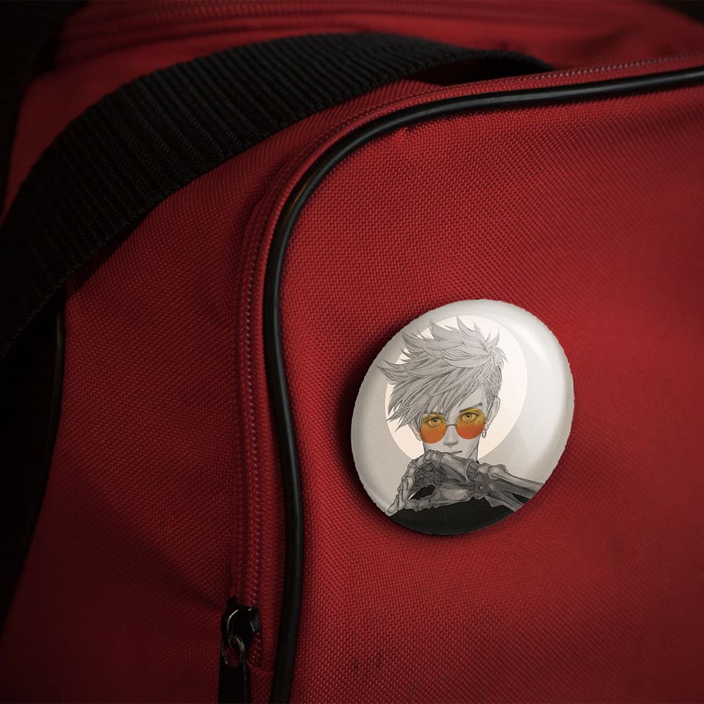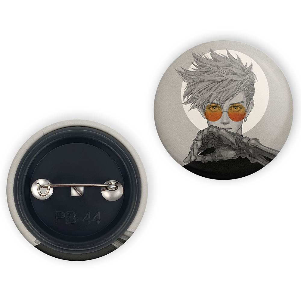 پیکسل 44 میلی متری وش انیمه تریگان (Trigun)خندالو با روکش سلفون حرارتی مات مخملی ضدخش و قطعه پشتی رنگی تولید شده است. قطعات پلاستیکی پشت پیکسل با سوزن یک تکه ثابت و بدون لغزش و جا به جایی، ایستایی بسیار بهتری نسبت به پشتی فلزی پیکسل دارند که این مهم در تولید این محصول نیز رعایت شده است.