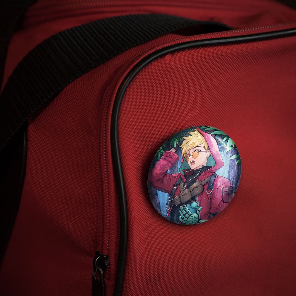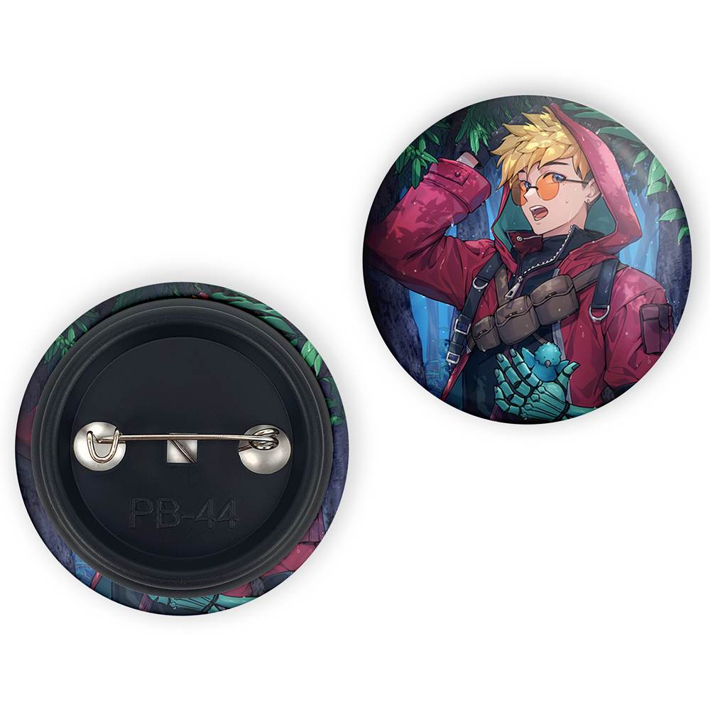 پیکسل 44 میلی متری وش انیمه تریگان (Trigun)خندالو با روکش سلفون حرارتی مات مخملی ضدخش و قطعه پشتی رنگی تولید شده است. قطعات پلاستیکی پشت پیکسل با سوزن یک تکه ثابت و بدون لغزش و جا به جایی، ایستایی بسیار بهتری نسبت به پشتی فلزی پیکسل دارند که این مهم در تولید این محصول نیز رعایت شده است.