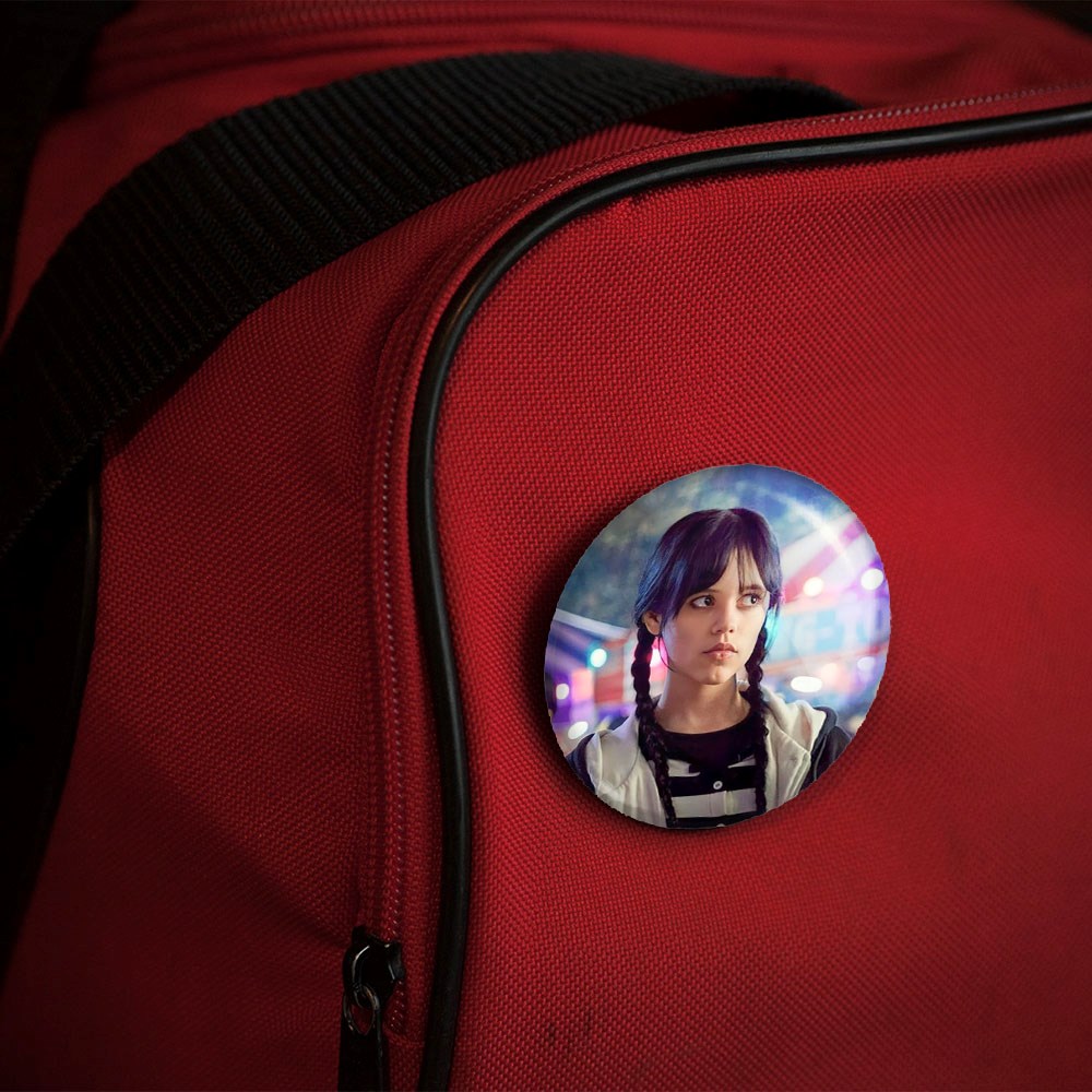 پیکسل 44 میلی متری ونزدی Wednesday خندالو با روکش سلفون حرارتی مات مخملی ضدخش و قطعه پشتی رنگی تولید شده است.پلاستیکی پشت پیکسل با سوزن یک تکه ثابت و بدون لغزش و جا به جایی، ایستایی بسیار بهتری نسبت به پشتی فلزی پیکسل دارند که این مهم در تولید این محصول نیز رعایت شده است.