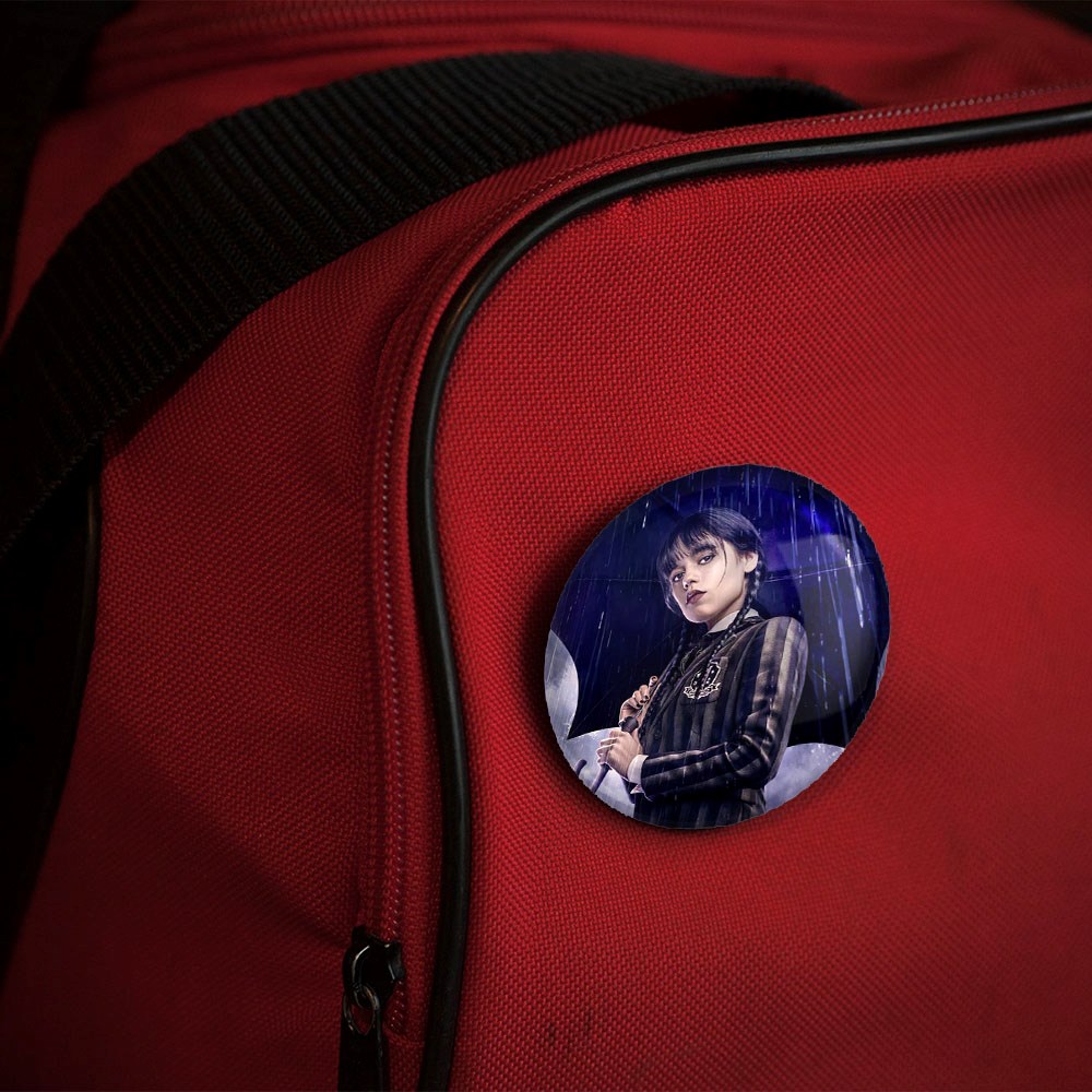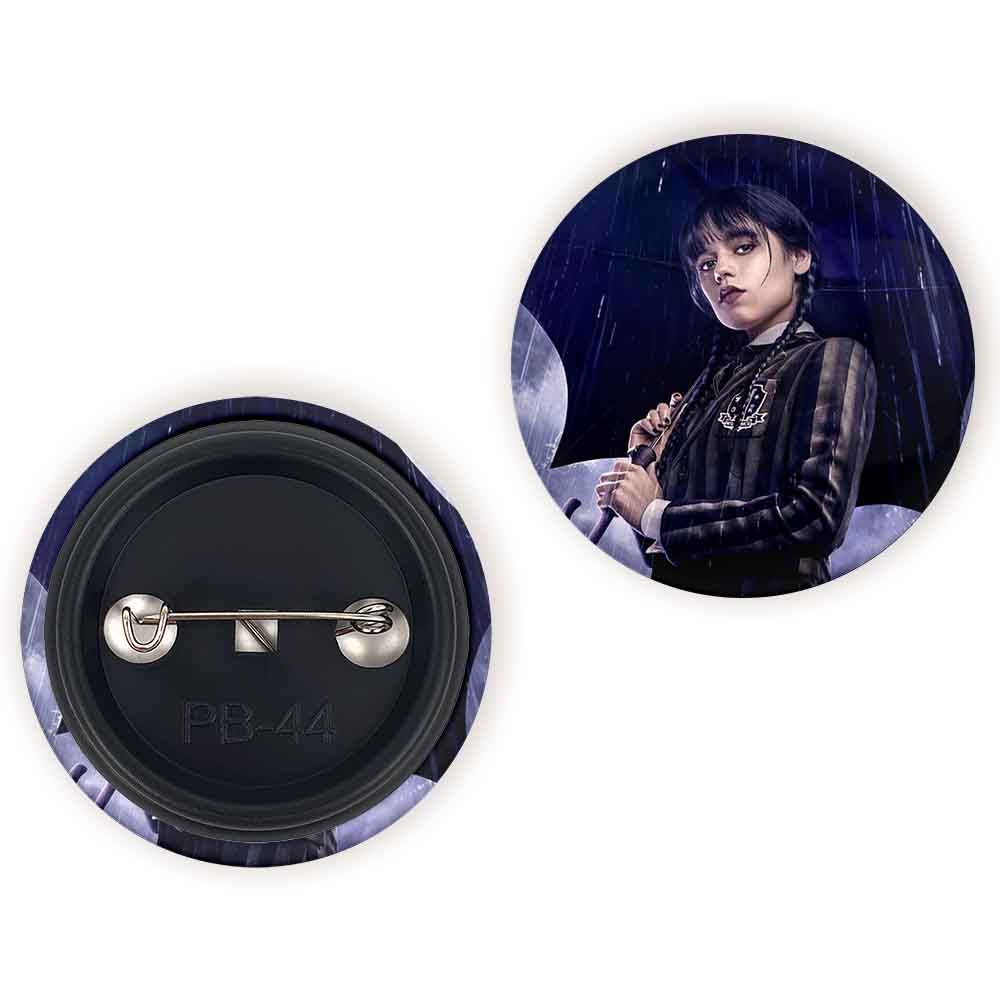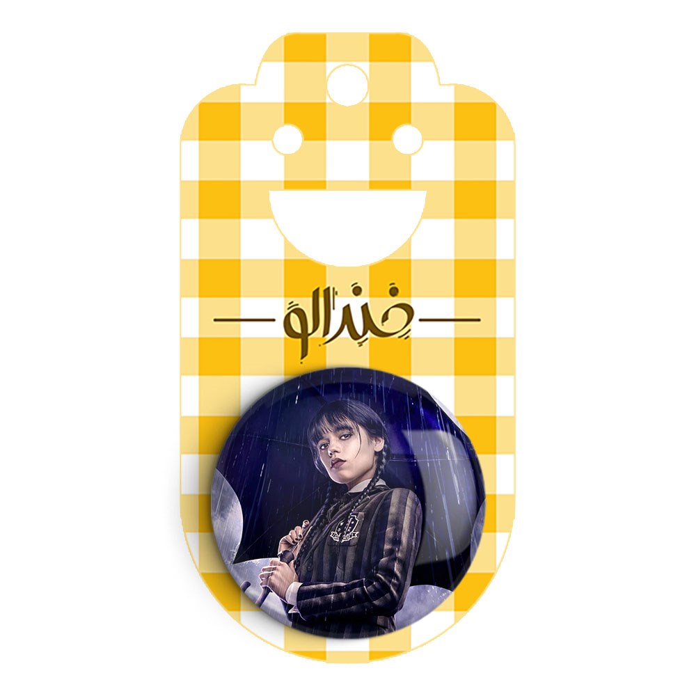 پیکسل 44 میلی متری ونزدی Wednesday خندالو با روکش سلفون حرارتی مات مخملی ضدخش و قطعه پشتی رنگی تولید شده است.پلاستیکی پشت پیکسل با سوزن یک تکه ثابت و بدون لغزش و جا به جایی، ایستایی بسیار بهتری نسبت به پشتی فلزی پیکسل دارند که این مهم در تولید این محصول نیز رعایت شده است.