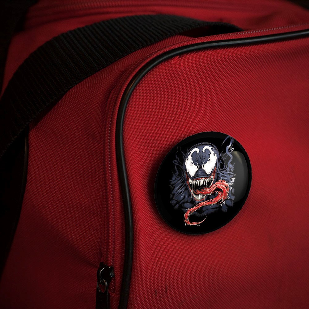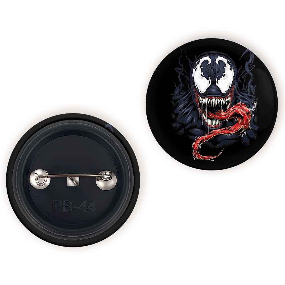 پیکسل 44 میلی متری ونوم Venom خندالو با روکش سلفون حرارتی مات مخملی ضدخش و قطعه پشتی رنگی تولید شده است.پلاستیکی پشت پیکسل با سوزن یک تکه ثابت و بدون لغزش و جا به جایی، ایستایی بسیار بهتری نسبت به پشتی فلزی پیکسل دارند که این مهم در تولید این محصول نیز رعایت شده است.