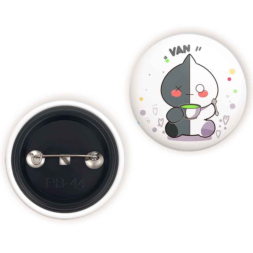 پیکسل 44 میلی متری ون BT21 Van خندالو با روکش سلفون حرارتی مات مخملی ضدخش و قطعه پشتی رنگی تولید شده است.پلاستیکی پشت پیکسل با سوزن یک تکه ثابت و بدون لغزش و جا به جایی، ایستایی بسیار بهتری نسبت به پشتی فلزی پیکسل دارند که این مهم در تولید این محصول نیز رعایت شده است.