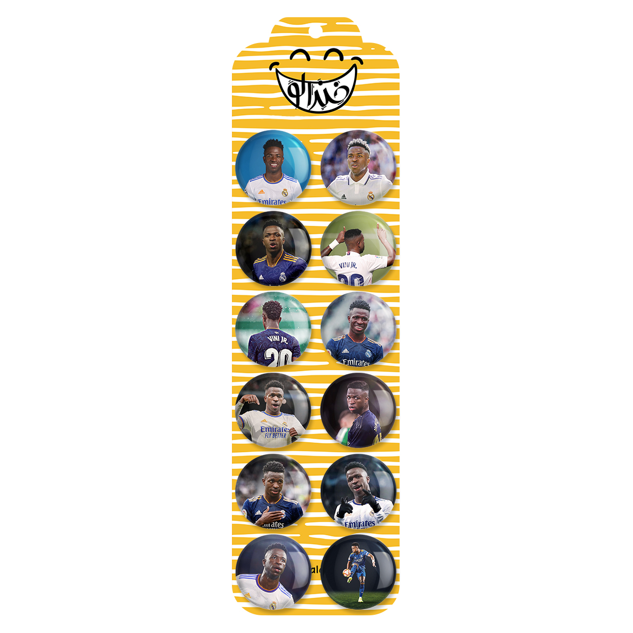 پک 12 عددی پیکسل خندالو طرح وینیسیوس جونیور (Vinicius Junior) با روکش سلفون حرارتی براق ضدخش و قطعه پشتی رنگی تولید شده است. قطعات پشتی از میان 6 رنگ سفید، مشکی، صورتی، زرد، آبی و قرمز که با توجه به نوع و رنگبندی طرح روی پیکسل انتخاب شده اند تولید می شود و در هر بسته بندی مطابق عکس محصول می باشد. قطعات پلاستیکی پشت پیکسل با سوزن یک تکه ثابت و بدون لغزش و جا به جایی، ایستایی بسیار بهتری نسبت به پشتی فلزی پیکسل دارند که این مهم در تولید این محصول نیز رعایت شده است.