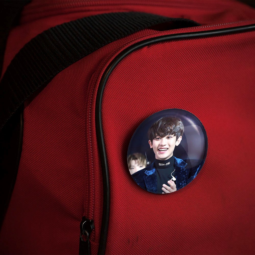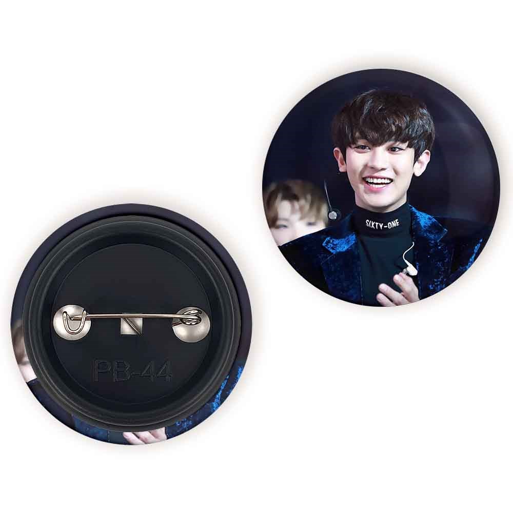 پیکسل 44 میلی متری پارک چانیول گروه اکسو EXO خندالو با روکش سلفون حرارتی مات مخملی ضدخش و قطعه پشتی رنگی تولید شده است.پلاستیکی پشت پیکسل با سوزن یک تکه ثابت و بدون لغزش و جا به جایی، ایستایی بسیار بهتری نسبت به پشتی فلزی پیکسل دارند که این مهم در تولید این محصول نیز رعایت شده است.