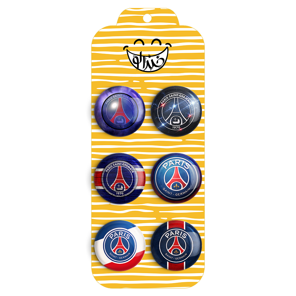 مجموعه 6 عددی پیکسل خندالو طرح پاری سن ژرمن (Paris Saint Germain) با روکش سلفون حرارتی براق ضدخش و قطعه پشتی رنگی تولید شده است. قطعات پشتی از میان 6 رنگ سفید، مشکی، صورتی، زرد، آبی و قرمز که با توجه به نوع و رنگبندی طرح روی پیکسل انتخاب شده اند تولید می شود و در هر بسته بندی مطابق عکس محصول می باشد.