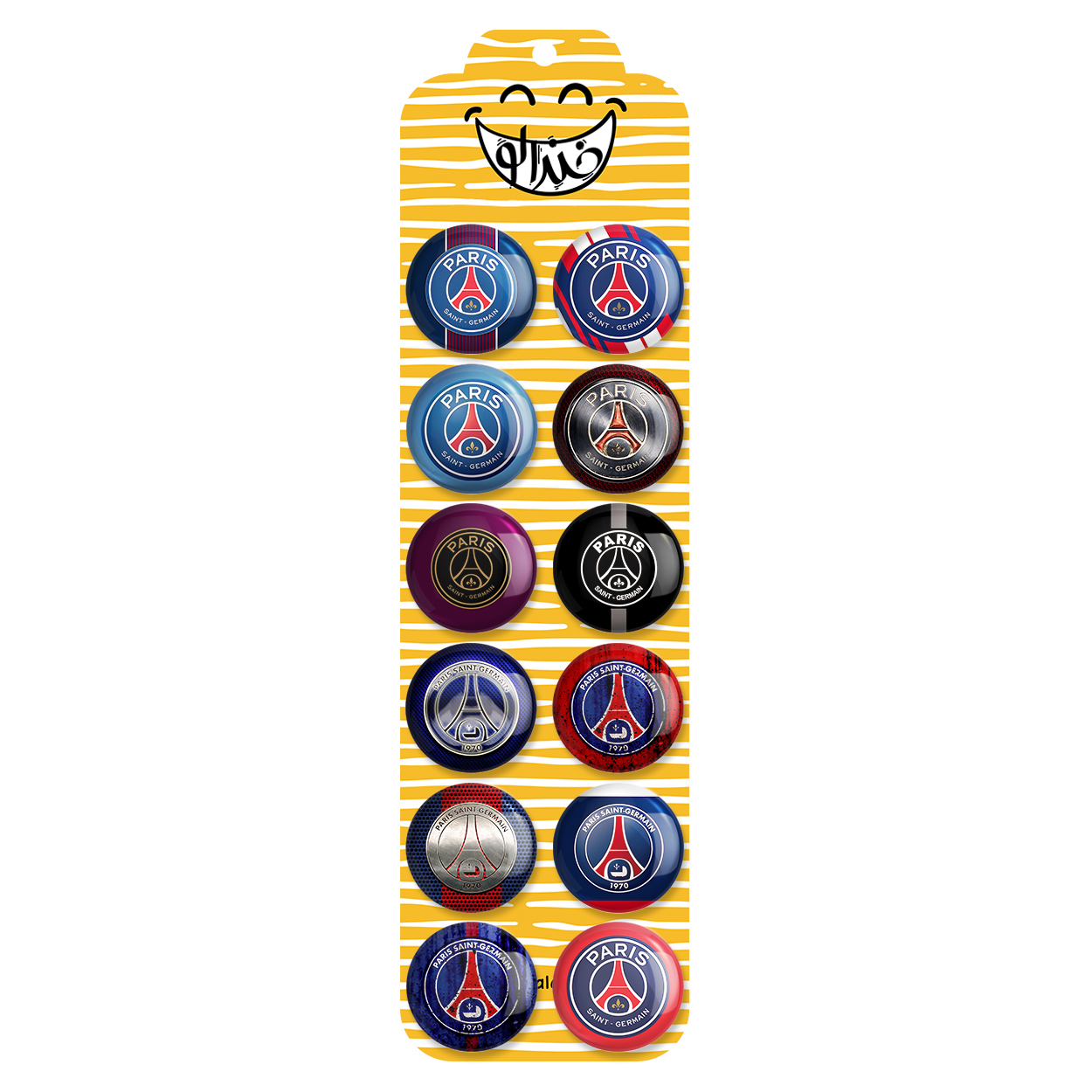 پک 12 عددی پیکسل خندالو طرح پاری سن ژرمن (Paris Saint Germain) با روکش سلفون حرارتی براق ضدخش و قطعه پشتی رنگی تولید شده است. قطعات پشتی از میان 6 رنگ سفید، مشکی، صورتی، زرد، آبی و قرمز که با توجه به نوع و رنگبندی طرح روی پیکسل انتخاب شده اند تولید می شود و در هر بسته بندی مطابق عکس محصول می باشد. قطعات پلاستیکی پشت پیکسل با سوزن یک تکه ثابت و بدون لغزش و جا به جایی، ایستایی بسیار بهتری نسبت به پشتی فلزی پیکسل دارند که این مهم در تولید این محصول نیز رعایت شده است.