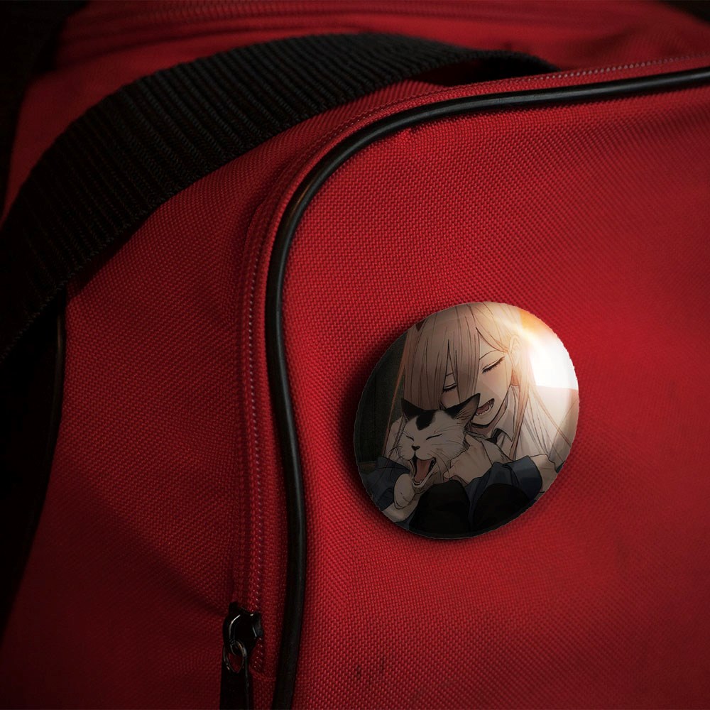 پیکسل 44 میلی متری پاور انیمه مرد اره ای Chainsaw Man خندالو با روکش سلفون حرارتی مات مخملی ضدخش و قطعه پشتی رنگی تولید شده است.پلاستیکی پشت پیکسل با سوزن یک تکه ثابت و بدون لغزش و جا به جایی، ایستایی بسیار بهتری نسبت به پشتی فلزی پیکسل دارند که این مهم در تولید این محصول نیز رعایت شده است.