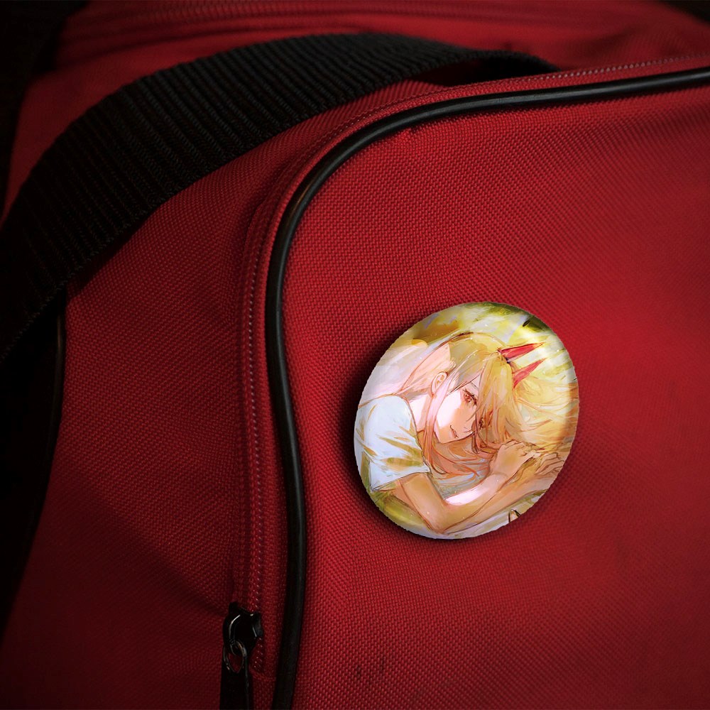 پیکسل 44 میلی متری پاور انیمه مرد اره ای Chainsaw Man خندالو با روکش سلفون حرارتی مات مخملی ضدخش و قطعه پشتی رنگی تولید شده است.پلاستیکی پشت پیکسل با سوزن یک تکه ثابت و بدون لغزش و جا به جایی، ایستایی بسیار بهتری نسبت به پشتی فلزی پیکسل دارند که این مهم در تولید این محصول نیز رعایت شده است.