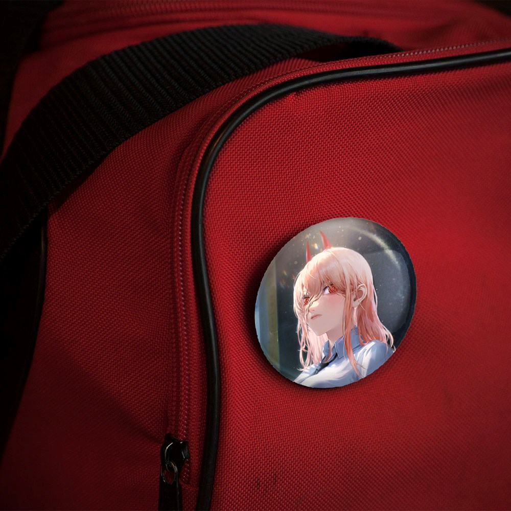 پیکسل 44 میلی متری پاور انیمه مرد اره ای Chainsaw Man خندالو با روکش سلفون حرارتی مات مخملی ضدخش و قطعه پشتی رنگی تولید شده است.پلاستیکی پشت پیکسل با سوزن یک تکه ثابت و بدون لغزش و جا به جایی، ایستایی بسیار بهتری نسبت به پشتی فلزی پیکسل دارند که این مهم در تولید این محصول نیز رعایت شده است.