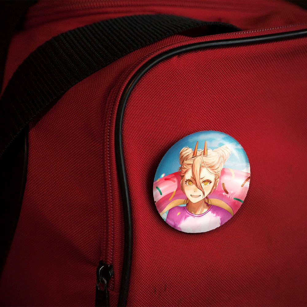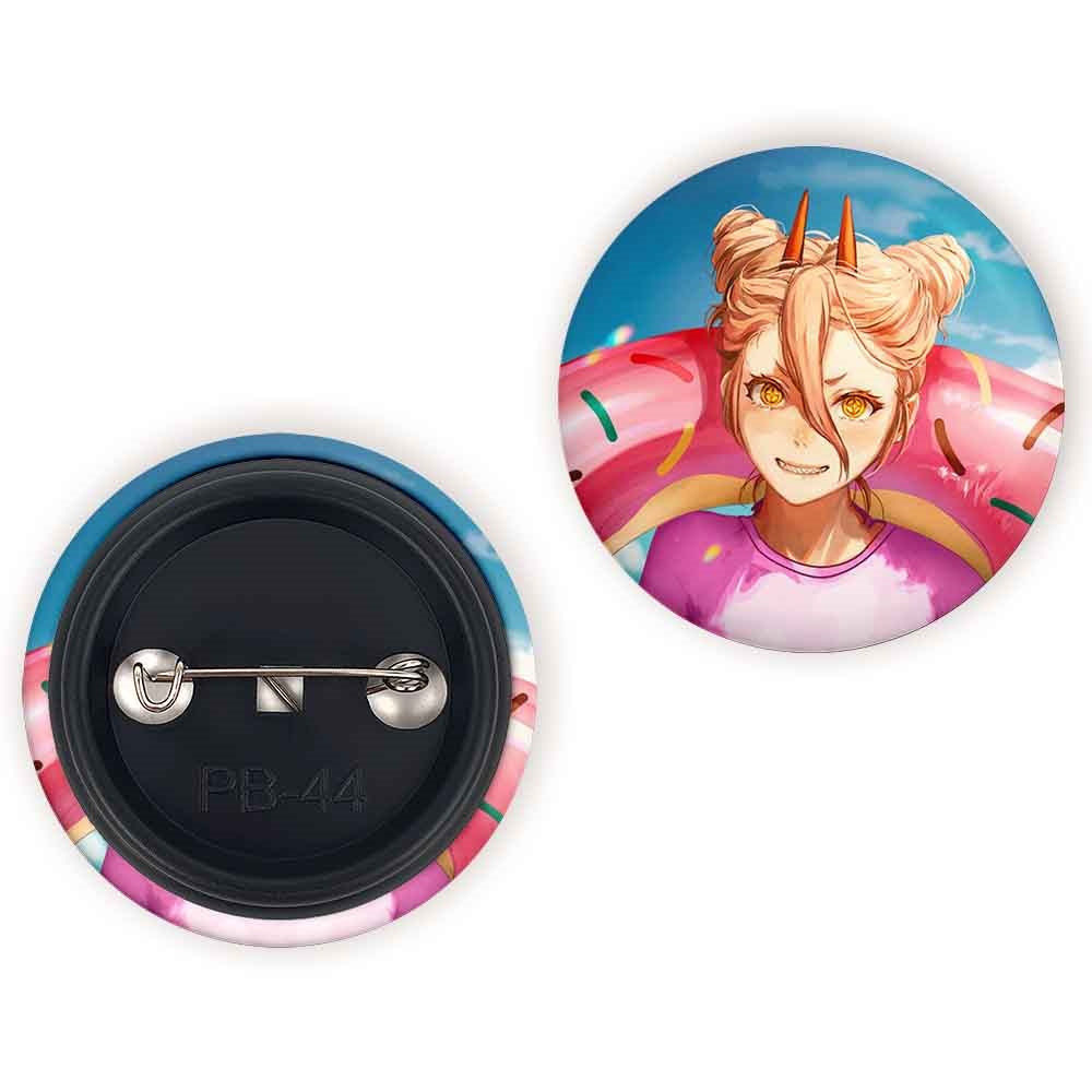 پیکسل 44 میلی متری پاور انیمه مرد اره ای Chainsaw Man خندالو با روکش سلفون حرارتی مات مخملی ضدخش و قطعه پشتی رنگی تولید شده است.پلاستیکی پشت پیکسل با سوزن یک تکه ثابت و بدون لغزش و جا به جایی، ایستایی بسیار بهتری نسبت به پشتی فلزی پیکسل دارند که این مهم در تولید این محصول نیز رعایت شده است.