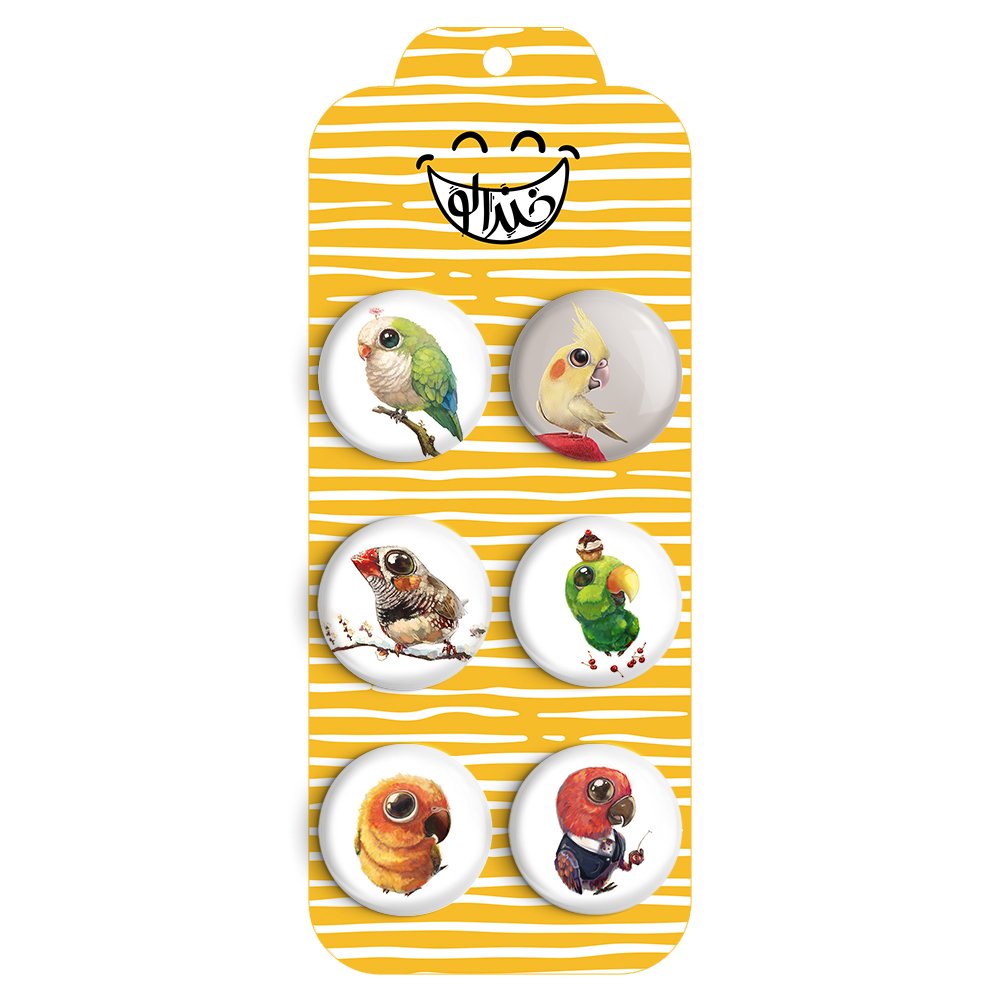 مجموعه 6 عددی پیکسل خندالو طرح پت شاپ پرنده با روکش سلفون حرارتی براق ضدخش و قطعه پشتی رنگی تولید شده است. قطعات پشتی از میان 6 رنگ سفید، مشکی، صورتی، زرد، آبی و قرمز که با توجه به نوع و رنگبندی طرح روی پیکسل انتخاب شده اند تولید می شود و در هر بسته بندی مطابق عکس محصول می باشد. قطعات پلاستیکی پشت پیکسل با سوزن یک تکه ثابت و بدون لغزش و جا به جایی، ایستایی بسیار بهتری نسبت به پشتی فلزی پیکسل دارند که این مهم در تولید این محصول نیز رعایت شده است. چاپ پیکسل نیز با دستگاه های استاندارد و با بهترین سطح کیفی صورت گرفته و طرح با شفافیتی مثال زدنی و با سلفونی بدون شکست نور بر روی پیکسل نقش بسته است. همچنین بسته بندی جذاب و مینیمال پیکسل ها، آنها را مناسب هدیه کرده است..