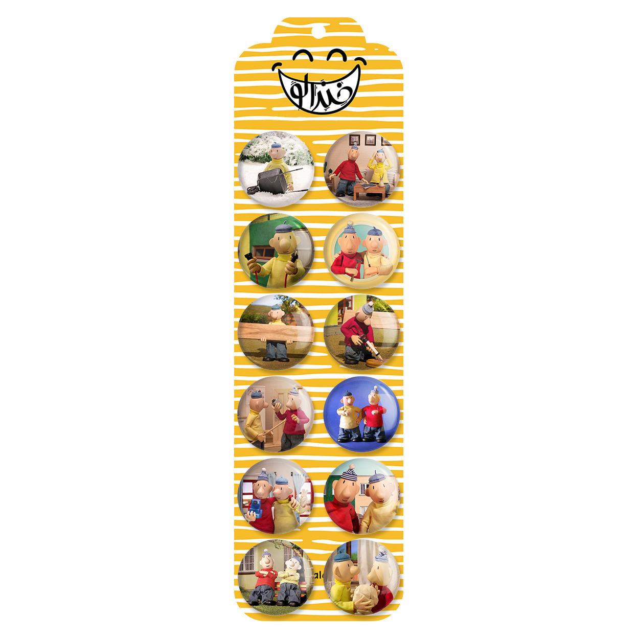 پک 12 عددی پیکسل خندالو طرح پت و مت (Pat And Mat) با روکش سلفون حرارتی براق ضدخش و قطعه پشتی رنگی تولید شده است. قطعات پشتی از میان 6 رنگ سفید، مشکی، صورتی، زرد، آبی و قرمز که با توجه به نوع و رنگبندی طرح روی پیکسل انتخاب شده اند تولید می شود و در هر بسته بندی مطابق عکس محصول می باشد. قطعات پلاستیکی پشت پیکسل با سوزن یک تکه ثابت و بدون لغزش و جا به جایی، ایستایی بسیار بهتری نسبت به پشتی فلزی پیکسل دارند که این مهم در تولید این محصول نیز رعایت شده است. چاپ پیکسل طرح پت و مت (Pat And Mat) بسته ۱۲ عددی نیز با دستگاه های استاندارد و با بهترین سطح کیفی صورت گرفته و طرح با شفافیتی مثال زدنی و با سلفونی بدون شکست نور بر روی پیکسل نقش بسته است.