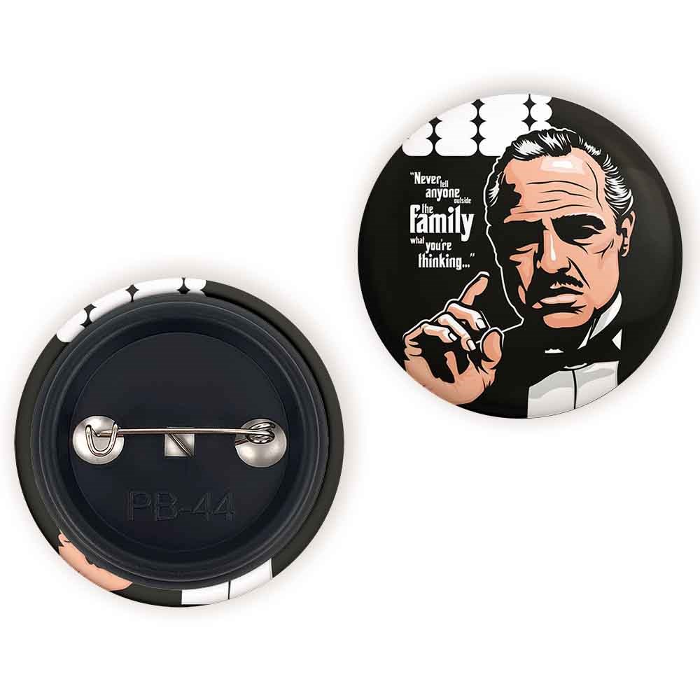 پیکسل 44 میلی متری پدرخوانده The Godfather خندالو با روکش سلفون حرارتی مات مخملی ضدخش و قطعه پشتی رنگی تولید شده است.پلاستیکی پشت پیکسل با سوزن یک تکه ثابت و بدون لغزش و جا به جایی، ایستایی بسیار بهتری نسبت به پشتی فلزی پیکسل دارند که این مهم در تولید این محصول نیز رعایت شده است.