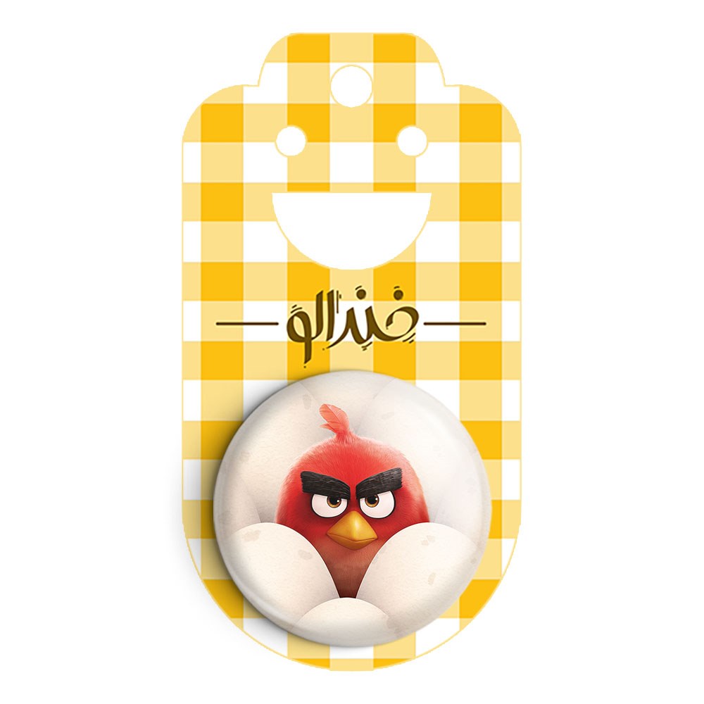 پیکسل 44 میلی متری پرندگان خشمگین Angry Birds خندالو با روکش سلفون حرارتی مات مخملی ضدخش و قطعه پشتی رنگی تولید شده است.پلاستیکی پشت پیکسل با سوزن یک تکه ثابت و بدون لغزش و جا به جایی، ایستایی بسیار بهتری نسبت به پشتی فلزی پیکسل دارند که این مهم در تولید این محصول نیز رعایت شده است.