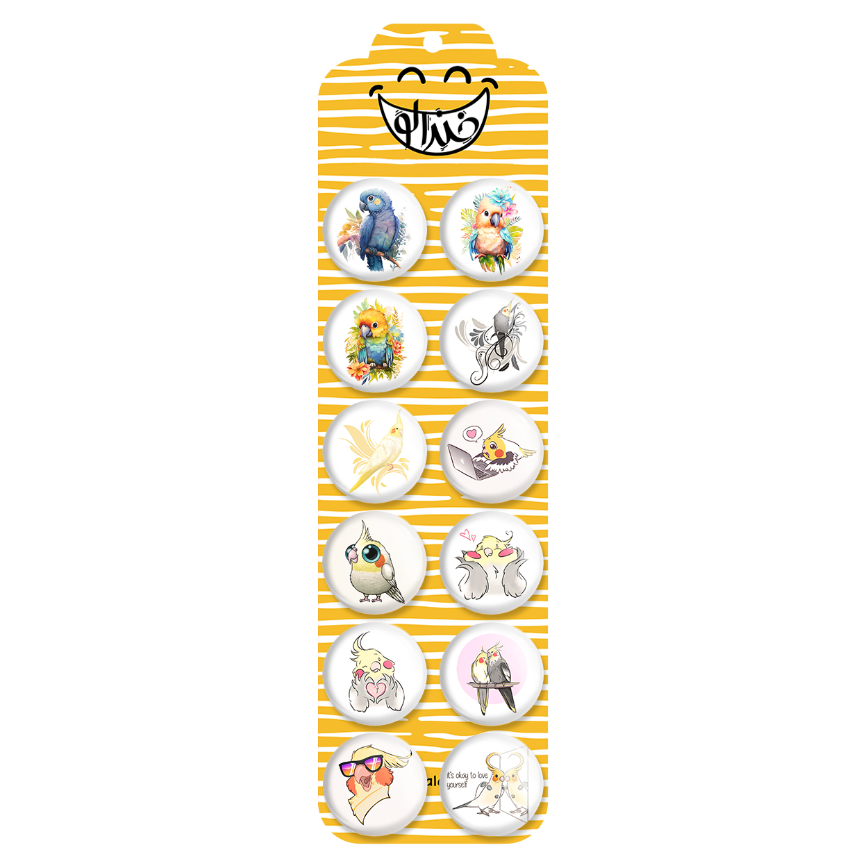 پک 12 عددی پیکسل خندالو طرح پرندگان زینتی با روکش سلفون حرارتی براق ضدخش و قطعه پشتی رنگی تولید شده است. قطعات پشتی از میان 6 رنگ سفید، مشکی، صورتی، زرد، آبی و قرمز که با توجه به نوع و رنگبندی طرح روی پیکسل انتخاب شده اند تولید می شود و در هر بسته بندی مطابق عکس محصول می باشد. قطعات پلاستیکی پشت پیکسل با سوزن یک تکه ثابت و بدون لغزش و جا به جایی، ایستایی بسیار بهتری نسبت به پشتی فلزی پیکسل دارند که این مهم در تولید این محصول نیز رعایت شده است.