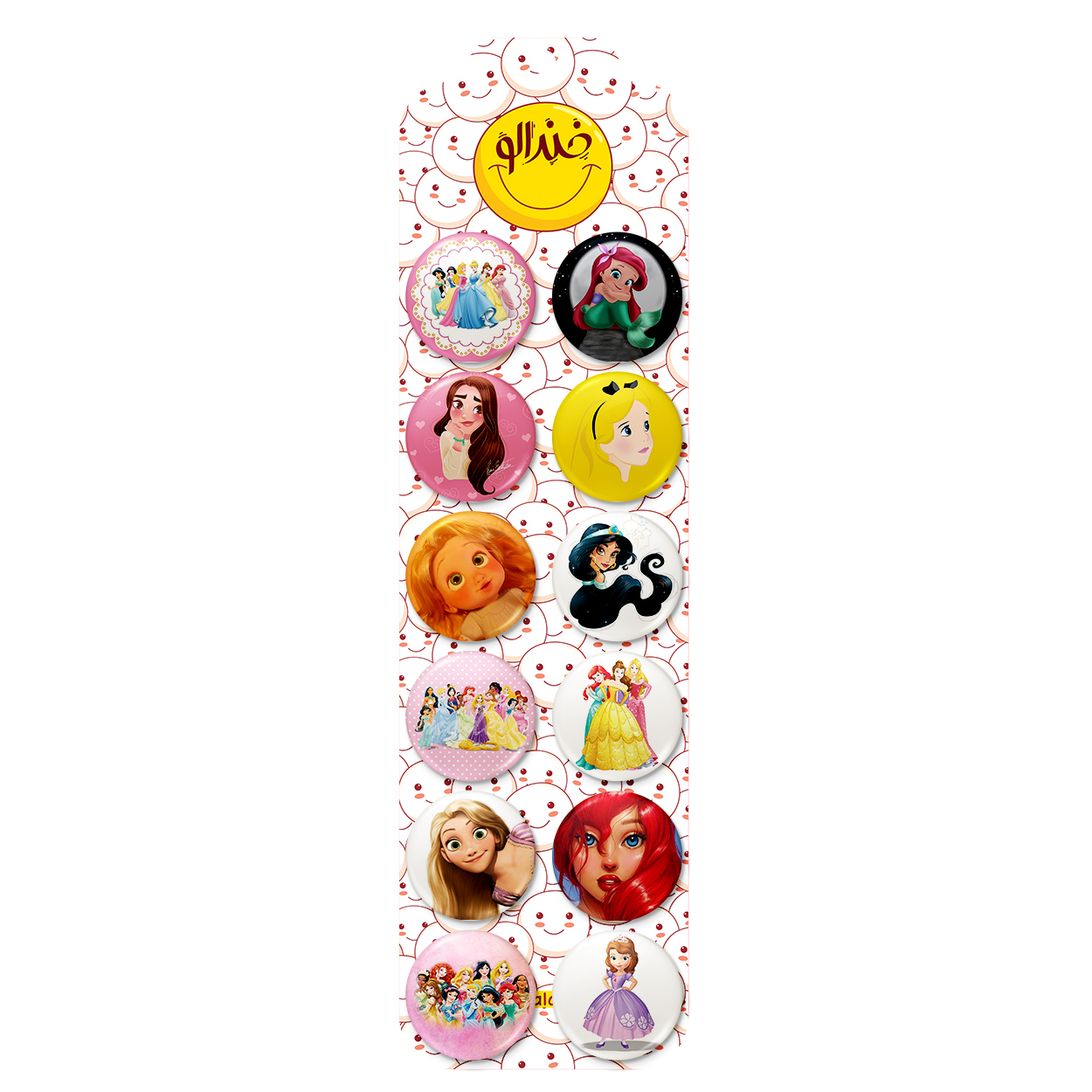 پک 12 عددی پیکسل خندالو طرح پرنسس های دیزنی با روکش سلفون حرارتی براق ضدخش و قطعه پشتی رنگی تولید شده است. قطعات پشتی از میان 6 رنگ سفید، مشکی، صورتی، زرد، آبی و قرمز که با توجه به نوع و رنگبندی طرح روی پیکسل انتخاب شده اند تولید می شود و در هر بسته بندی مطابق عکس محصول می باشد. قطعات پلاستیکی پشت پیکسل با سوزن یک تکه ثابت و بدون لغزش و جا به جایی، ایستایی بسیار بهتری نسبت به پشتی فلزی پیکسل دارند که این مهم در تولید این محصول نیز رعایت شده است. چاپ پیکسل طرح پرنسس های دیزنی بسته ۱۲ عددی نیز با دستگاه های استاندارد و با بهترین سطح کیفی صورت گرفته و طرح با شفافیتی مثال زدنی و با سلفونی بدون شکست نور بر روی پیکسل نقش بسته است.