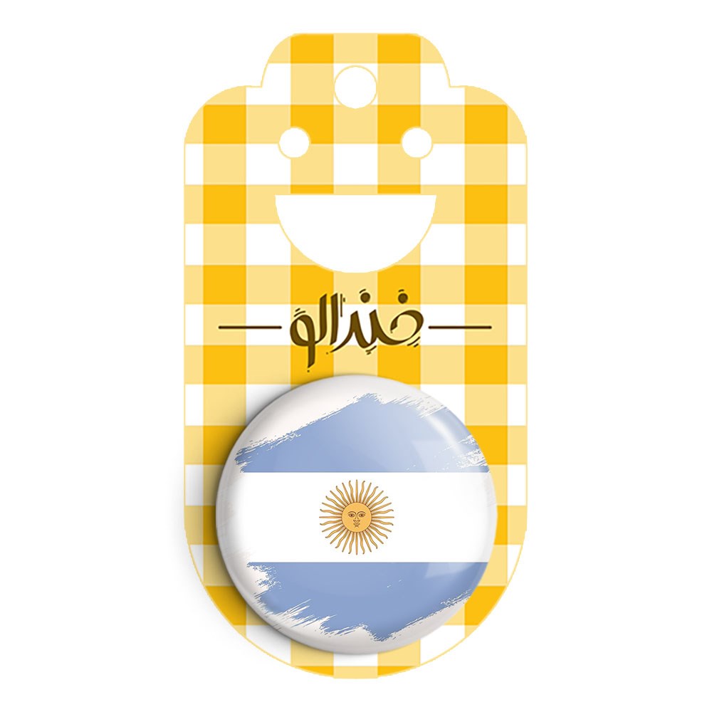 پیکسل 44 میلی متری پرچم آرژانتین خندالو با روکش سلفون حرارتی مات مخملی ضدخش و قطعه پشتی رنگی تولید شده است.پلاستیکی پشت پیکسل با سوزن یک تکه ثابت و بدون لغزش و جا به جایی، ایستایی بسیار بهتری نسبت به پشتی فلزی پیکسل دارند که این مهم در تولید این محصول نیز رعایت شده است.