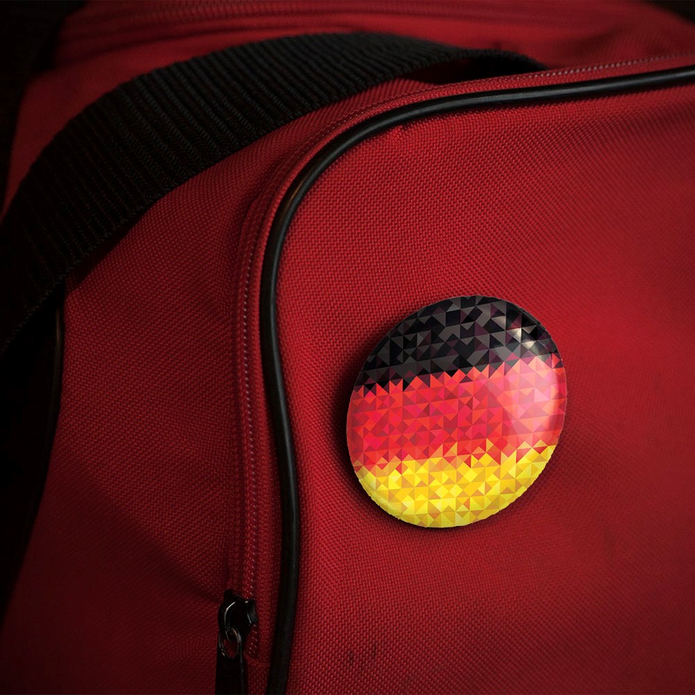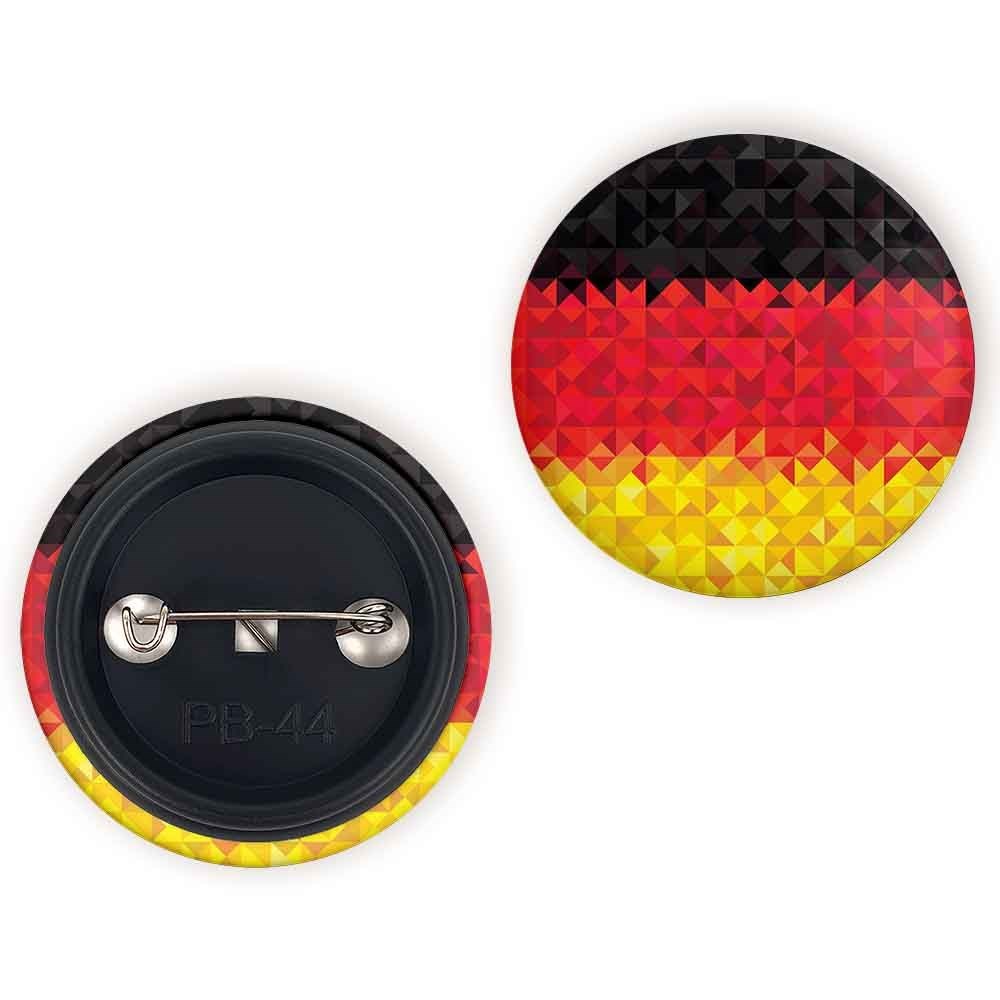 پیکسل 44 میلی متری پرچم آلمان خندالو با روکش سلفون حرارتی مات مخملی ضدخش و قطعه پشتی رنگی تولید شده است.پلاستیکی پشت پیکسل با سوزن یک تکه ثابت و بدون لغزش و جا به جایی، ایستایی بسیار بهتری نسبت به پشتی فلزی پیکسل دارند که این مهم در تولید این محصول نیز رعایت شده است.