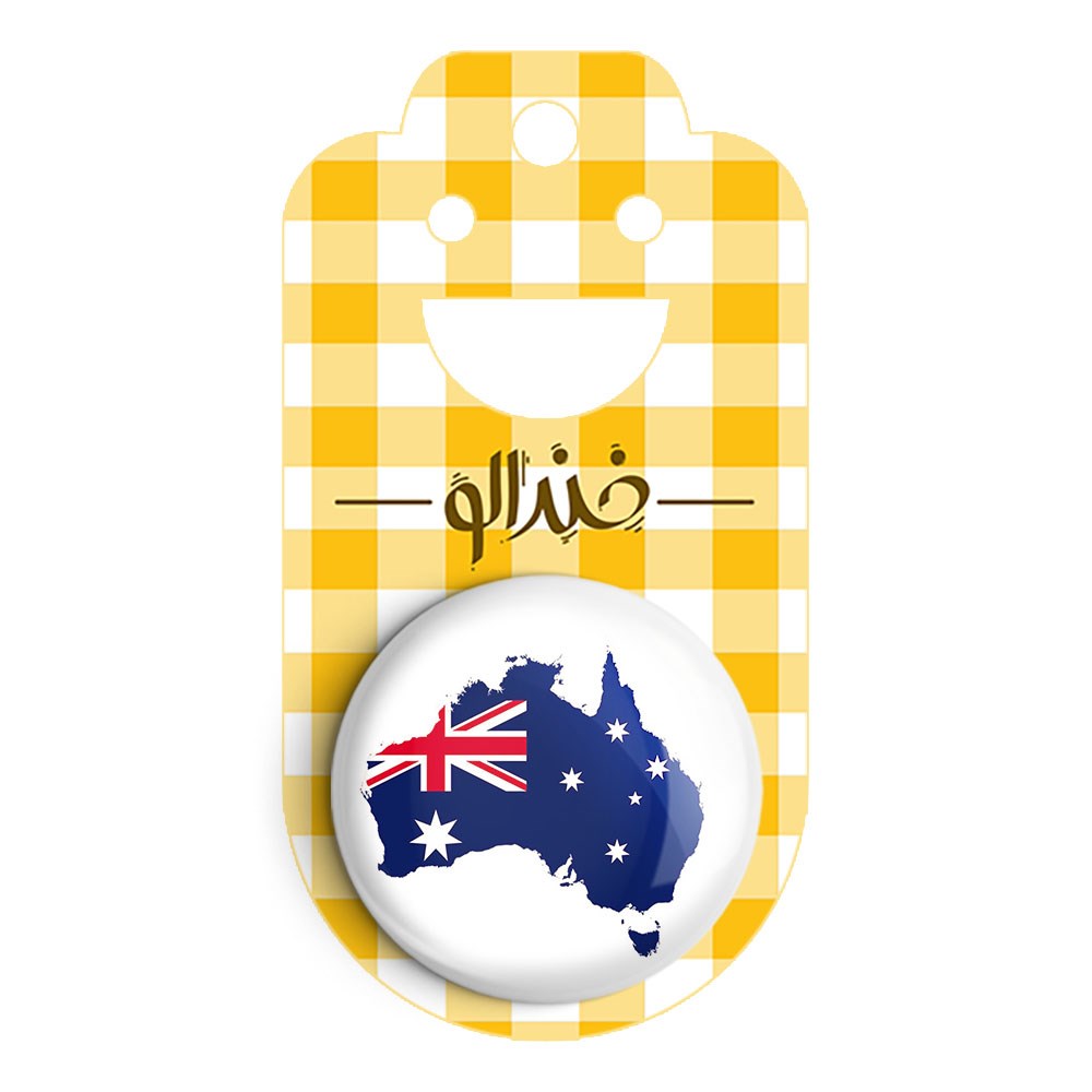 پیکسل 44 میلی متری پرچم استرالیا خندالو با روکش سلفون حرارتی مات مخملی ضدخش و قطعه پشتی رنگی تولید شده است.پلاستیکی پشت پیکسل با سوزن یک تکه ثابت و بدون لغزش و جا به جایی، ایستایی بسیار بهتری نسبت به پشتی فلزی پیکسل دارند که این مهم در تولید این محصول نیز رعایت شده است.