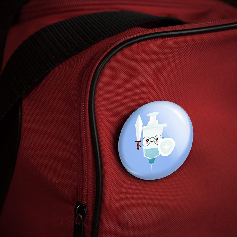پیکسل 44 میلی متری پزشک و پرستار کودکانهخندالو با روکش سلفون حرارتی مات مخملی ضدخش و قطعه پشتی رنگی تولید شده است. قطعات پلاستیکی پشت پیکسل با سوزن یک تکه ثابت و بدون لغزش و جا به جایی، ایستایی بسیار بهتری نسبت به پشتی فلزی پیکسل دارند که این مهم در تولید این محصول نیز رعایت شده است.