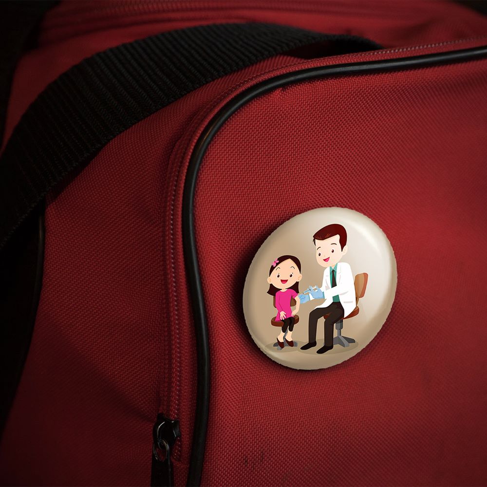 پیکسل 44 میلی متری پزشک و پرستار کودکانهخندالو با روکش سلفون حرارتی مات مخملی ضدخش و قطعه پشتی رنگی تولید شده است. قطعات پلاستیکی پشت پیکسل با سوزن یک تکه ثابت و بدون لغزش و جا به جایی، ایستایی بسیار بهتری نسبت به پشتی فلزی پیکسل دارند که این مهم در تولید این محصول نیز رعایت شده است.