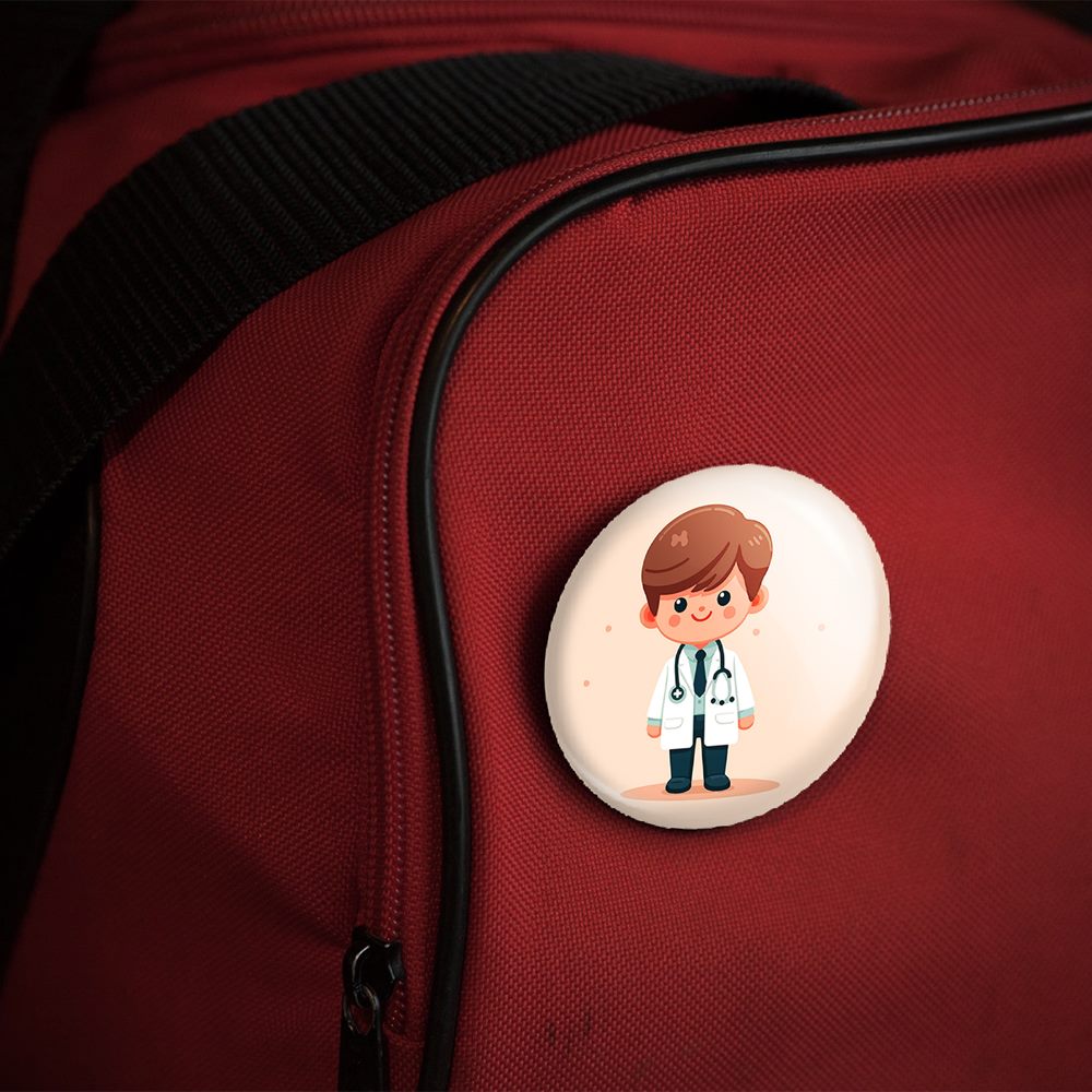 پیکسل 44 میلی متری پزشک و پرستار کودکانهخندالو با روکش سلفون حرارتی مات مخملی ضدخش و قطعه پشتی رنگی تولید شده است. قطعات پلاستیکی پشت پیکسل با سوزن یک تکه ثابت و بدون لغزش و جا به جایی، ایستایی بسیار بهتری نسبت به پشتی فلزی پیکسل دارند که این مهم در تولید این محصول نیز رعایت شده است.