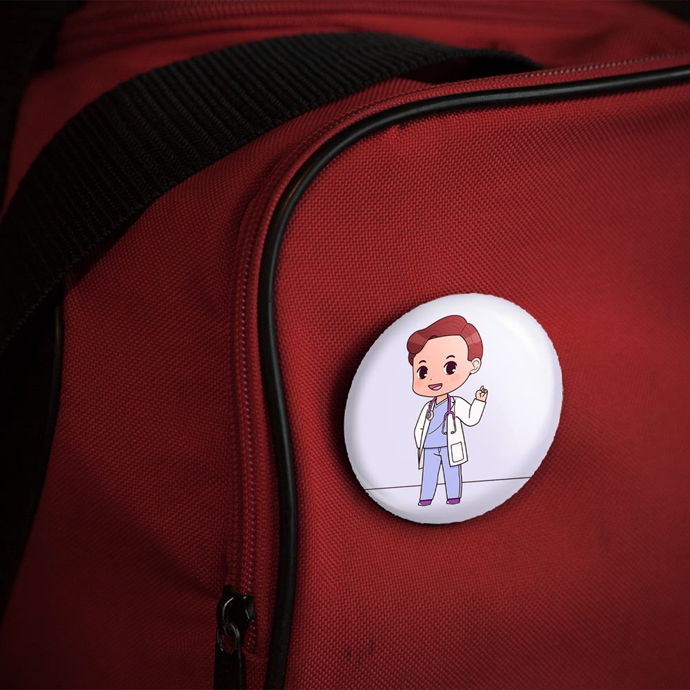 پیکسل 44 میلی متری پزشک و پرستار کودکانهخندالو با روکش سلفون حرارتی مات مخملی ضدخش و قطعه پشتی رنگی تولید شده است. قطعات پلاستیکی پشت پیکسل با سوزن یک تکه ثابت و بدون لغزش و جا به جایی، ایستایی بسیار بهتری نسبت به پشتی فلزی پیکسل دارند که این مهم در تولید این محصول نیز رعایت شده است.