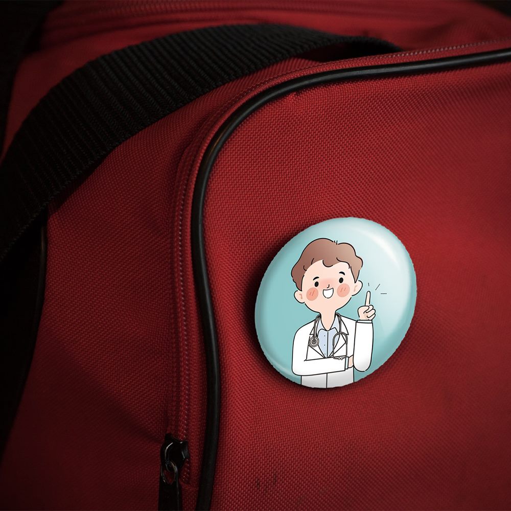 پیکسل 44 میلی متری پزشک و پرستارخندالو با روکش سلفون حرارتی مات مخملی ضدخش و قطعه پشتی رنگی تولید شده است. قطعات پلاستیکی پشت پیکسل با سوزن یک تکه ثابت و بدون لغزش و جا به جایی، ایستایی بسیار بهتری نسبت به پشتی فلزی پیکسل دارند که این مهم در تولید این محصول نیز رعایت شده است.