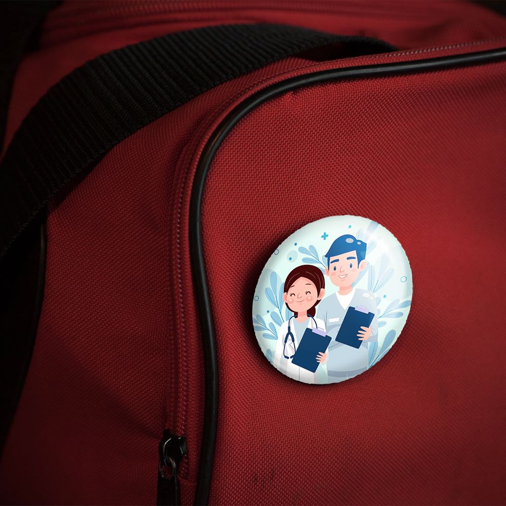 پیکسل 44 میلی متری پزشک و پرستارخندالو با روکش سلفون حرارتی مات مخملی ضدخش و قطعه پشتی رنگی تولید شده است. قطعات پلاستیکی پشت پیکسل با سوزن یک تکه ثابت و بدون لغزش و جا به جایی، ایستایی بسیار بهتری نسبت به پشتی فلزی پیکسل دارند که این مهم در تولید این محصول نیز رعایت شده است.