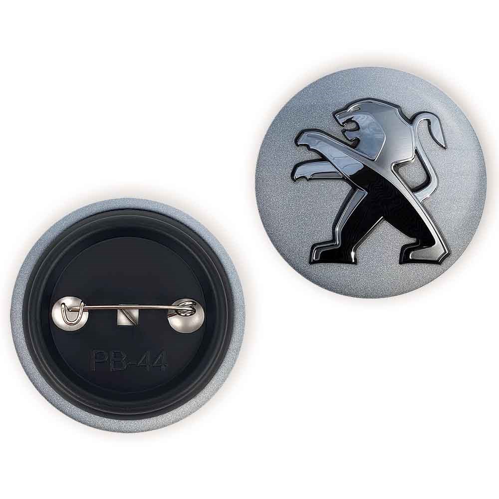 پیکسل 44 میلی متری پژو Peugeot خندالو با روکش سلفون حرارتی مات مخملی ضدخش و قطعه پشتی رنگی تولید شده است.پلاستیکی پشت پیکسل با سوزن یک تکه ثابت و بدون لغزش و جا به جایی، ایستایی بسیار بهتری نسبت به پشتی فلزی پیکسل دارند که این مهم در تولید این محصول نیز رعایت شده است.