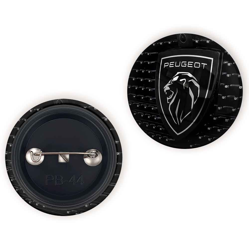 پیکسل 44 میلی متری پژو Peugeot خندالو با روکش سلفون حرارتی مات مخملی ضدخش و قطعه پشتی رنگی تولید شده است.پلاستیکی پشت پیکسل با سوزن یک تکه ثابت و بدون لغزش و جا به جایی، ایستایی بسیار بهتری نسبت به پشتی فلزی پیکسل دارند که این مهم در تولید این محصول نیز رعایت شده است.