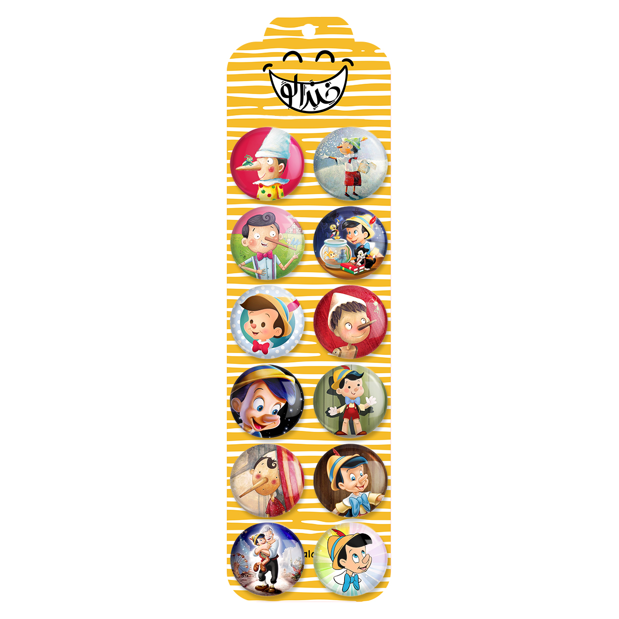پک 12 عددی پیکسل خندالو طرح پینوکیو با روکش سلفون حرارتی براق ضدخش و قطعه پشتی رنگی تولید شده است. قطعات پشتی از میان 6 رنگ سفید، مشکی، صورتی، زرد، آبی و قرمز که با توجه به نوع و رنگبندی طرح روی پیکسل انتخاب شده اند تولید می شود و در هر بسته بندی مطابق عکس محصول می باشد. قطعات پلاستیکی پشت پیکسل با سوزن یک تکه ثابت و بدون لغزش و جا به جایی، ایستایی بسیار بهتری نسبت به پشتی فلزی پیکسل دارند که این مهم در تولید این محصول نیز رعایت شده است.