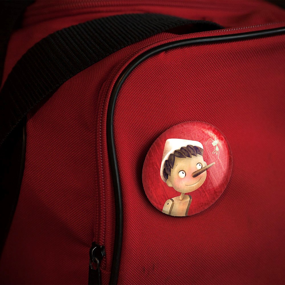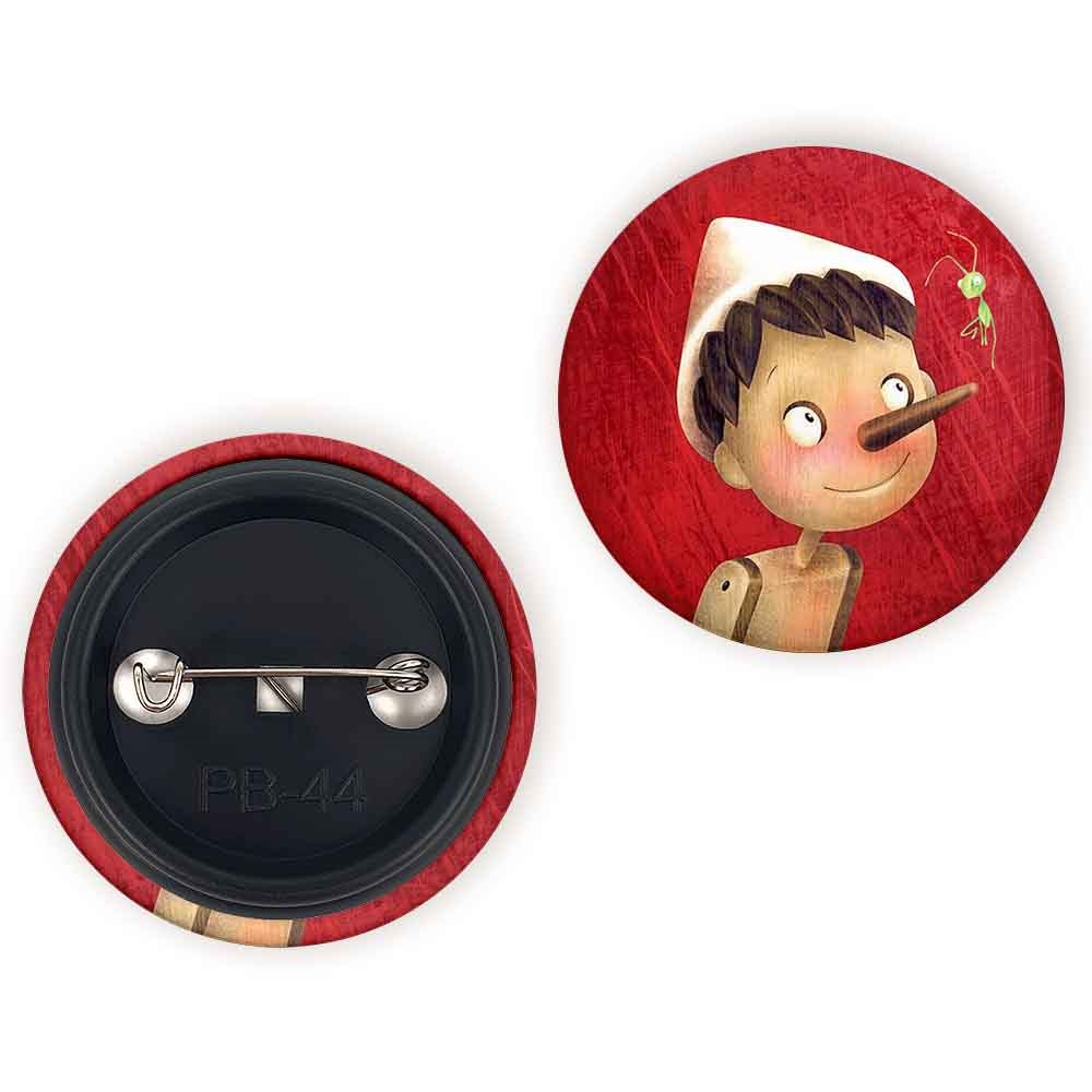 پیکسل 44 میلی متری پینوکیو Pinocchio خندالو با روکش سلفون حرارتی مات مخملی ضدخش و قطعه پشتی رنگی تولید شده است.پلاستیکی پشت پیکسل با سوزن یک تکه ثابت و بدون لغزش و جا به جایی، ایستایی بسیار بهتری نسبت به پشتی فلزی پیکسل دارند که این مهم در تولید این محصول نیز رعایت شده است.