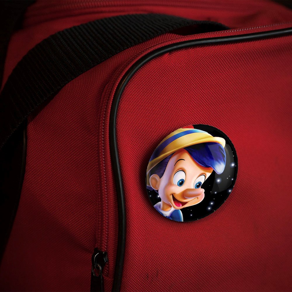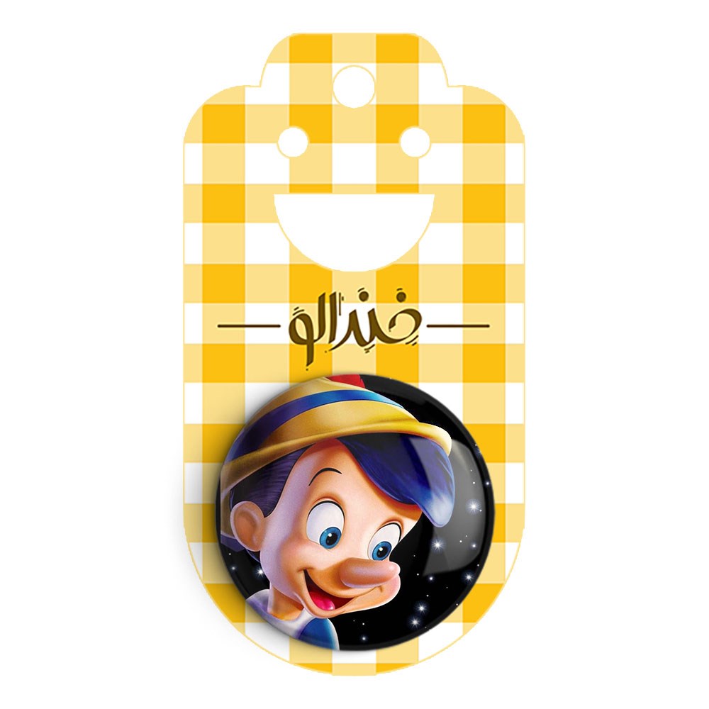 پیکسل 44 میلی متری پینوکیو Pinocchio خندالو با روکش سلفون حرارتی مات مخملی ضدخش و قطعه پشتی رنگی تولید شده است.پلاستیکی پشت پیکسل با سوزن یک تکه ثابت و بدون لغزش و جا به جایی، ایستایی بسیار بهتری نسبت به پشتی فلزی پیکسل دارند که این مهم در تولید این محصول نیز رعایت شده است.