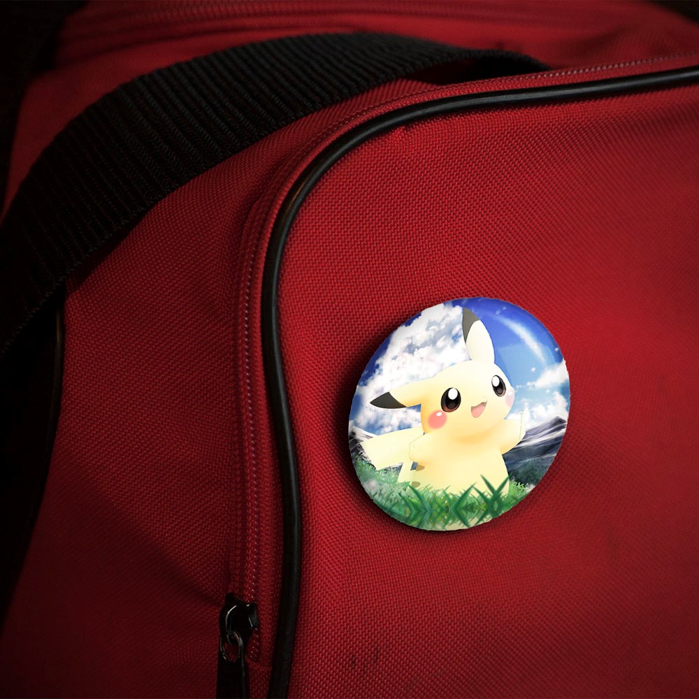 پیکسل 44 میلی متری پیکاچو انیمه پوکمون خندالو با روکش سلفون حرارتی مات مخملی ضدخش و قطعه پشتی رنگی تولید شده است.پلاستیکی پشت پیکسل با سوزن یک تکه ثابت و بدون لغزش و جا به جایی، ایستایی بسیار بهتری نسبت به پشتی فلزی پیکسل دارند که این مهم در تولید این محصول نیز رعایت شده است.