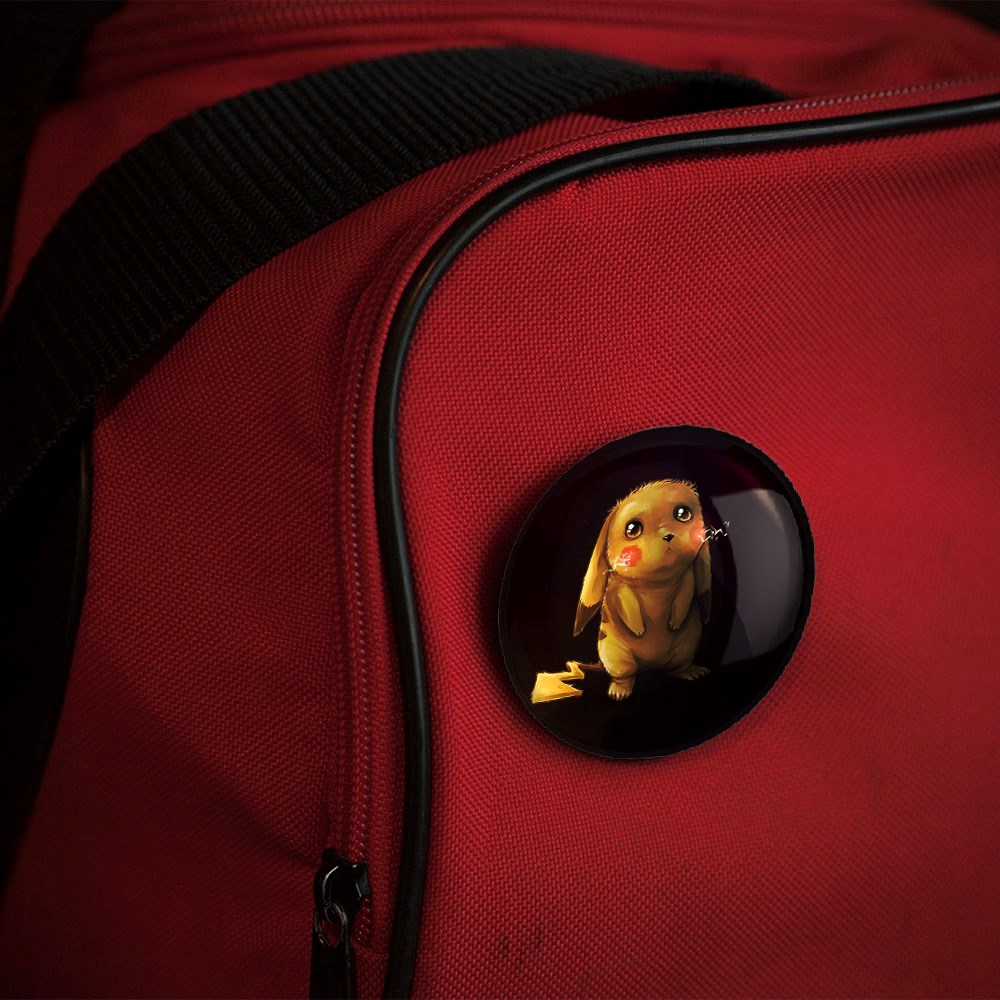 پیکسل 44 میلی متری پیکاچو انیمه پوکمون خندالو با روکش سلفون حرارتی مات مخملی ضدخش و قطعه پشتی رنگی تولید شده است.پلاستیکی پشت پیکسل با سوزن یک تکه ثابت و بدون لغزش و جا به جایی، ایستایی بسیار بهتری نسبت به پشتی فلزی پیکسل دارند که این مهم در تولید این محصول نیز رعایت شده است.