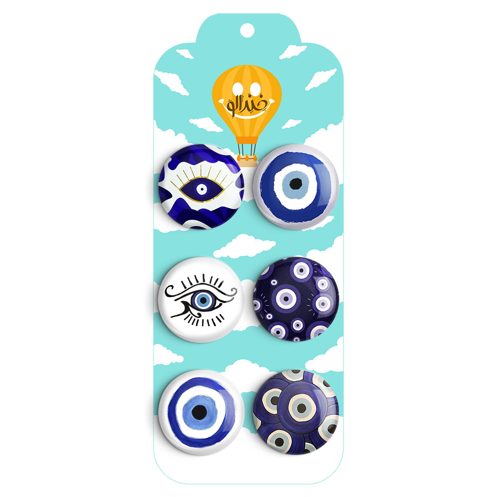 مجموعه 6 عددی پیکسل خندالو طرح چشم نظر با روکش سلفون حرارتی براق ضدخش و قطعه پشتی رنگی تولید شده است. قطعات پشتی از میان 6 رنگ سفید، مشکی، صورتی، زرد، آبی و قرمز که با توجه به نوع و رنگبندی طرح روی پیکسل انتخاب شده اند تولید می شود و در هر بسته بندی مطابق عکس محصول می باشد.