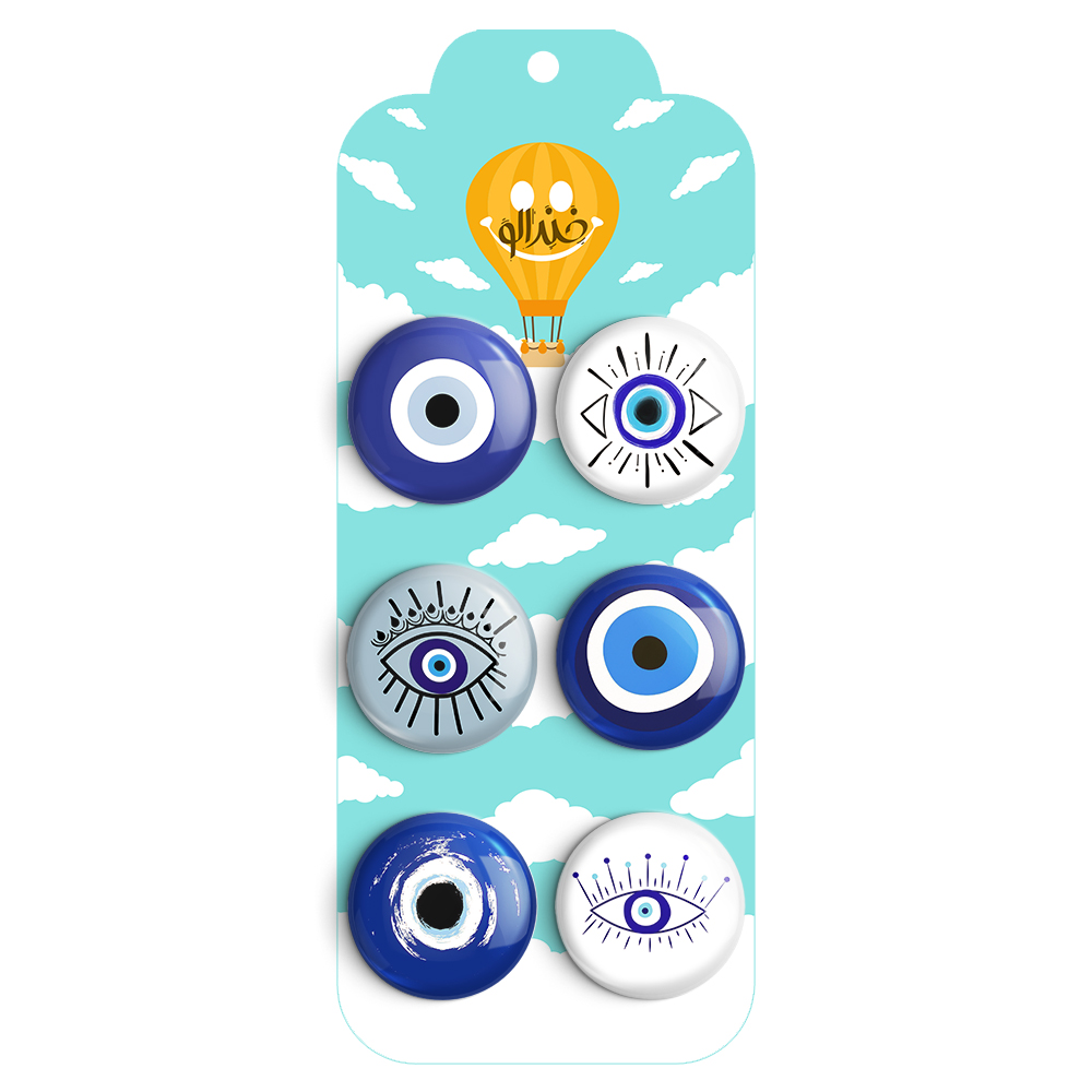 مجموعه 6 عددی پیکسل خندالو طرح چشم نظر با روکش سلفون حرارتی براق ضدخش و قطعه پشتی رنگی تولید شده است. قطعات پشتی از میان 6 رنگ سفید، مشکی، صورتی، زرد، آبی و قرمز که با توجه به نوع و رنگبندی طرح روی پیکسل انتخاب شده اند تولید می شود و در هر بسته بندی مطابق عکس محصول می باشد.