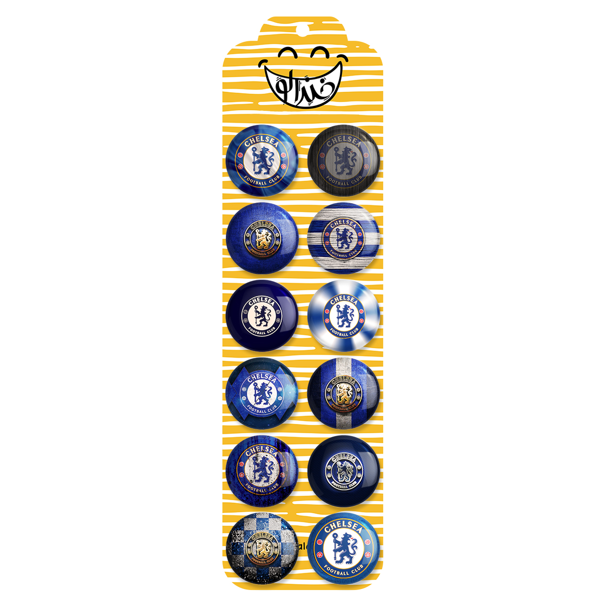 پک 12 عددی پیکسل خندالو طرح چلسی (Chelsea) با روکش سلفون حرارتی براق ضدخش و قطعه پشتی رنگی تولید شده است. قطعات پشتی از میان 6 رنگ سفید، مشکی، صورتی، زرد، آبی و قرمز که با توجه به نوع و رنگبندی طرح روی پیکسل انتخاب شده اند تولید می شود و در هر بسته بندی مطابق عکس محصول می باشد. قطعات پلاستیکی پشت پیکسل با سوزن یک تکه ثابت و بدون لغزش و جا به جایی، ایستایی بسیار بهتری نسبت به پشتی فلزی پیکسل دارند که این مهم در تولید این محصول نیز رعایت شده است. چاپ پیکسل طرح چلسی (Chelsea) بسته ۱۲ عددی نیز با دستگاه های استاندارد و با بهترین سطح کیفی صورت گرفته و طرح با شفافیتی مثال زدنی و با سلفونی بدون شکست نور بر روی پیکسل نقش بسته است.
