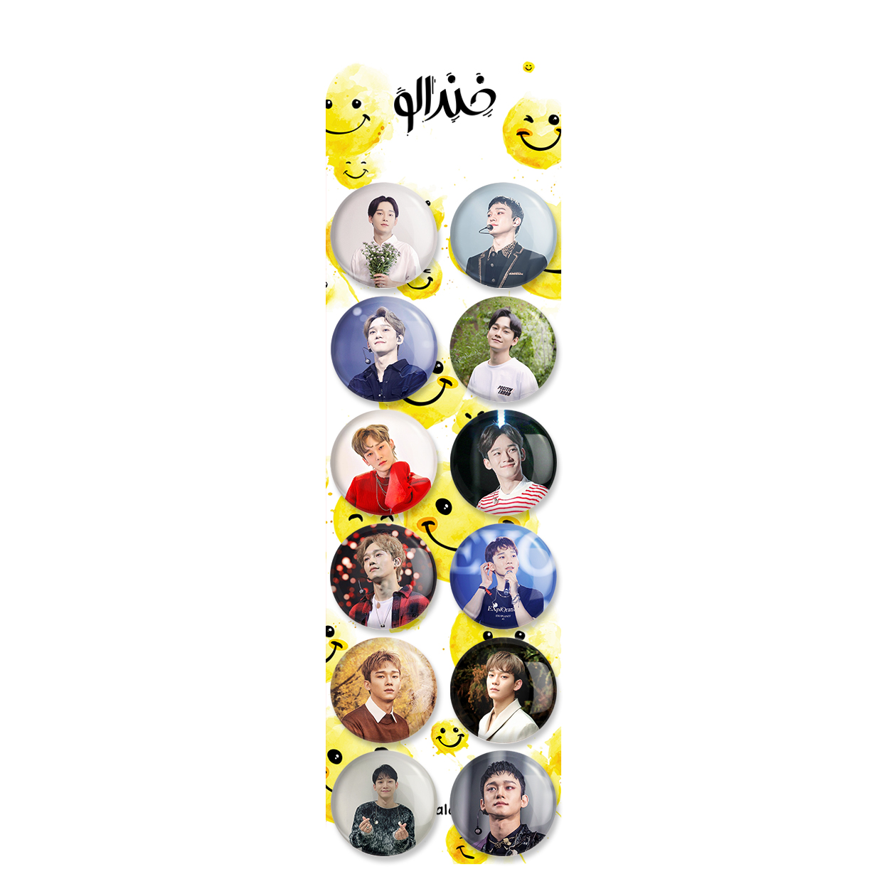 پک 12 عددی پیکسل خندالو طرح چن Chen اکسو EXO با روکش سلفون حرارتی براق ضدخش و قطعه پشتی رنگی تولید شده است. قطعات پشتی از میان 6 رنگ سفید، مشکی، صورتی، زرد، آبی و قرمز که با توجه به نوع و رنگبندی طرح روی پیکسل انتخاب شده اند تولید می شود و در هر بسته بندی مطابق عکس محصول می باشد. قطعات پلاستیکی پشت پیکسل با سوزن یک تکه ثابت و بدون لغزش و جا به جایی، ایستایی بسیار بهتری نسبت به پشتی فلزی پیکسل دارند که این مهم در تولید این محصول نیز رعایت شده است.