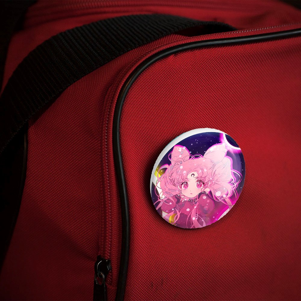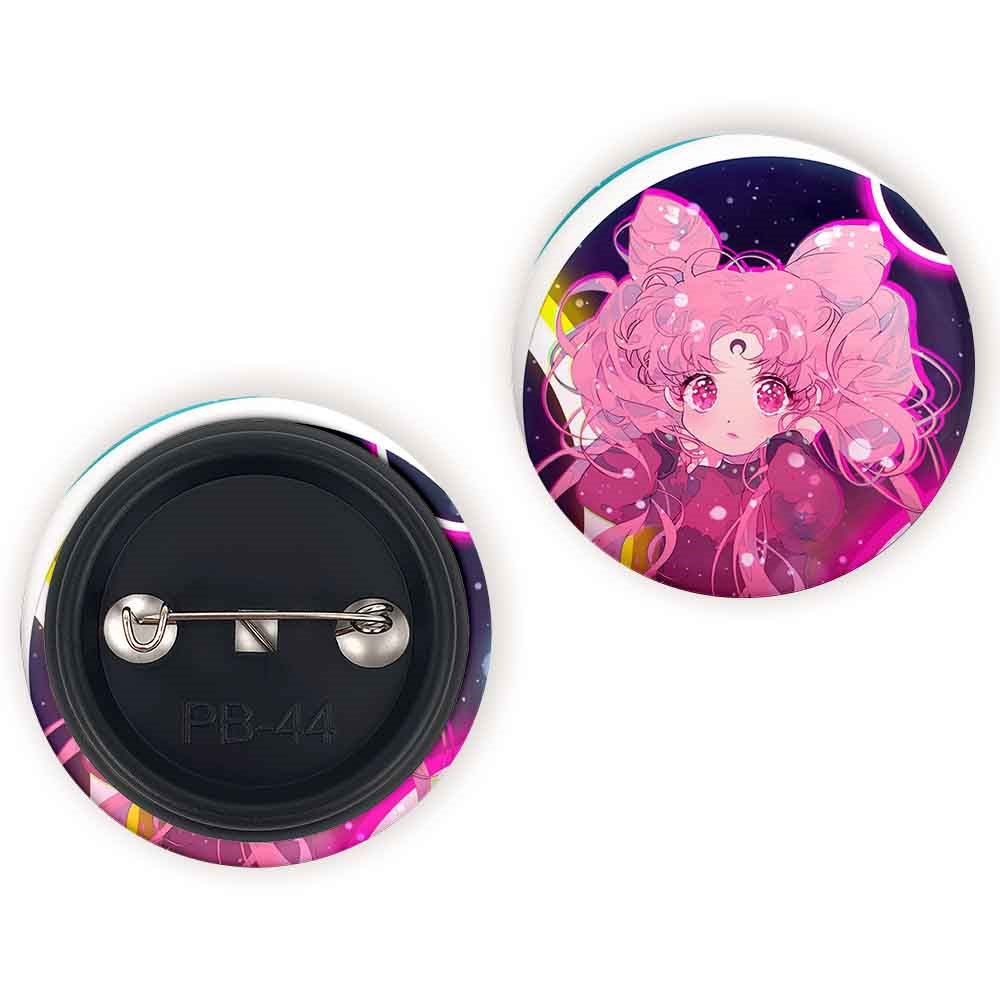 پیکسل 44 میلی متری چیبیوسا انیمه سیلور مون Sailor Moon خندالو با روکش سلفون حرارتی مات مخملی ضدخش و قطعه پشتی رنگی تولید شده است.پلاستیکی پشت پیکسل با سوزن یک تکه ثابت و بدون لغزش و جا به جایی، ایستایی بسیار بهتری نسبت به پشتی فلزی پیکسل دارند که این مهم در تولید این محصول نیز رعایت شده است.