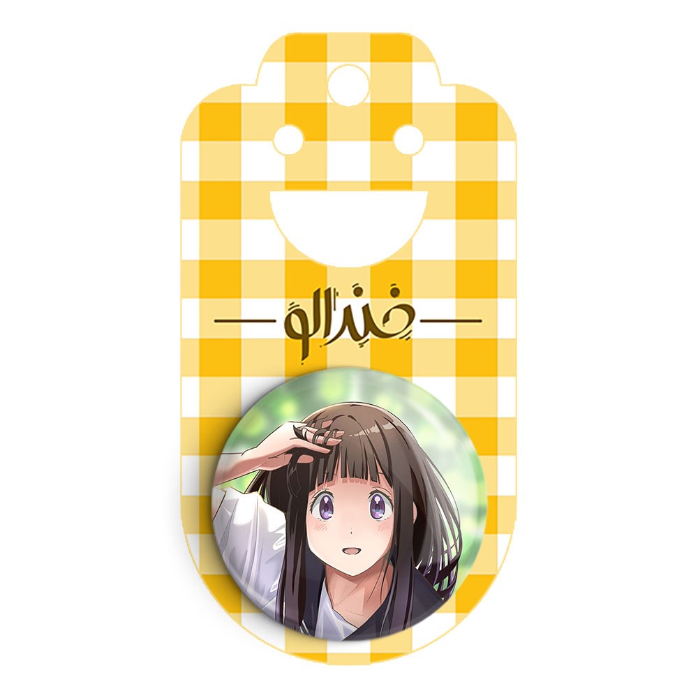 پیکسل 44 میلی متری چیتاندا انیمه هیوکا Hyouka خندالو با روکش سلفون حرارتی مات مخملی ضدخش و قطعه پشتی رنگی تولید شده است.پلاستیکی پشت پیکسل با سوزن یک تکه ثابت و بدون لغزش و جا به جایی، ایستایی بسیار بهتری نسبت به پشتی فلزی پیکسل دارند که این مهم در تولید این محصول نیز رعایت شده است.