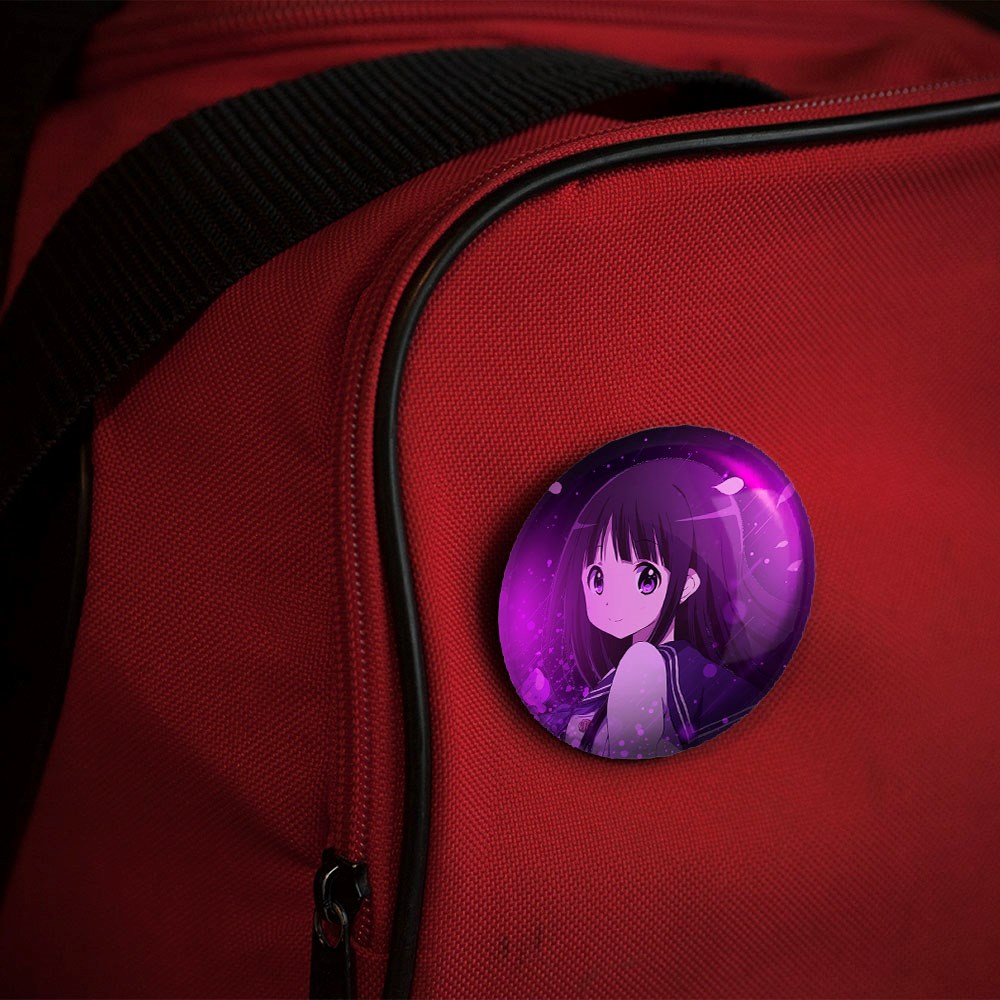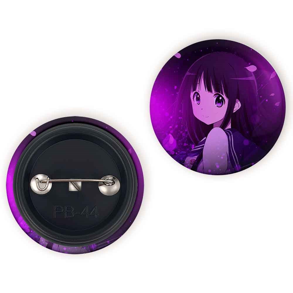 پیکسل 44 میلی متری چیتاندا انیمه هیوکا Hyouka خندالو با روکش سلفون حرارتی مات مخملی ضدخش و قطعه پشتی رنگی تولید شده است.پلاستیکی پشت پیکسل با سوزن یک تکه ثابت و بدون لغزش و جا به جایی، ایستایی بسیار بهتری نسبت به پشتی فلزی پیکسل دارند که این مهم در تولید این محصول نیز رعایت شده است.
