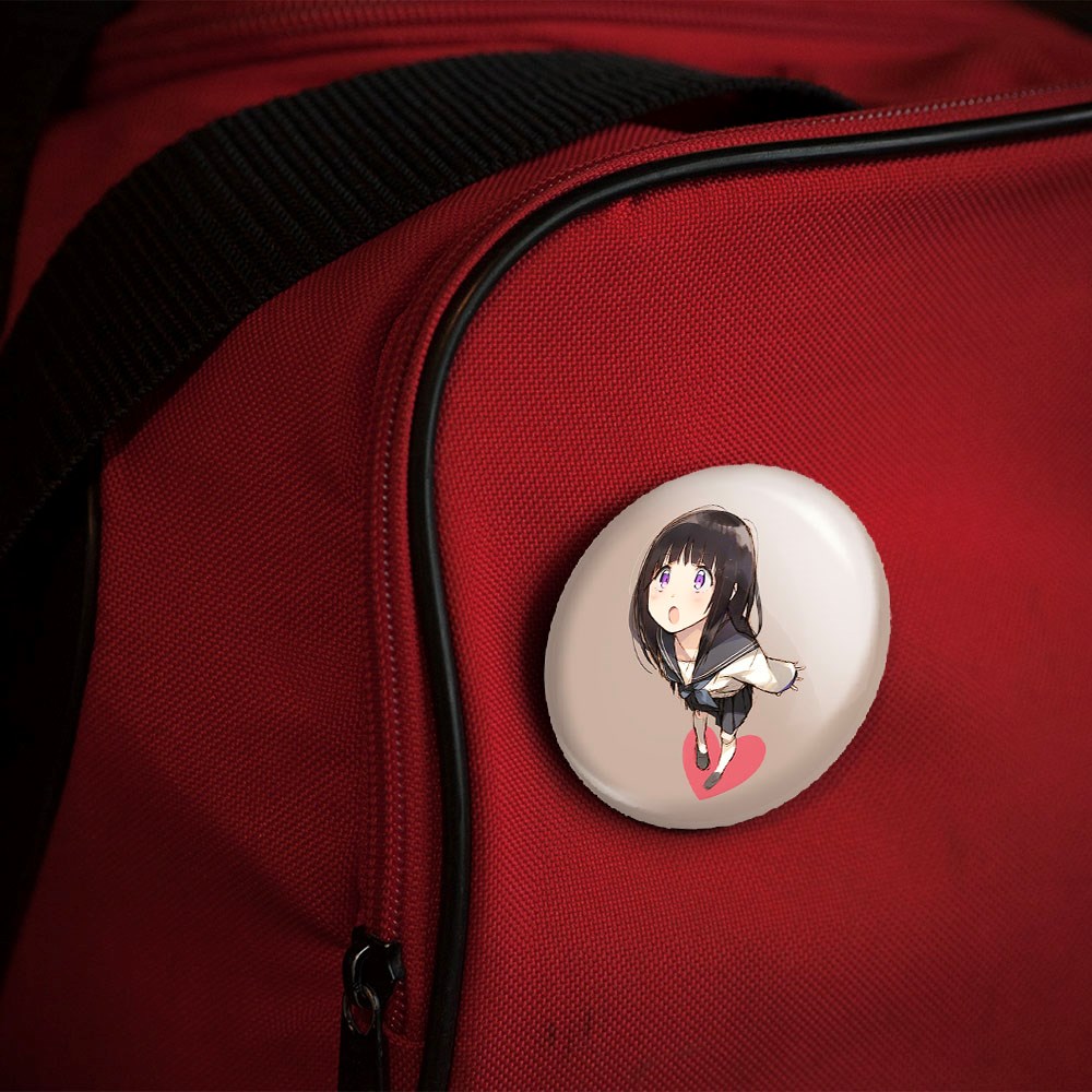 پیکسل 44 میلی متری چیتاندا انیمه هیوکا Hyouka خندالو با روکش سلفون حرارتی مات مخملی ضدخش و قطعه پشتی رنگی تولید شده است.پلاستیکی پشت پیکسل با سوزن یک تکه ثابت و بدون لغزش و جا به جایی، ایستایی بسیار بهتری نسبت به پشتی فلزی پیکسل دارند که این مهم در تولید این محصول نیز رعایت شده است.