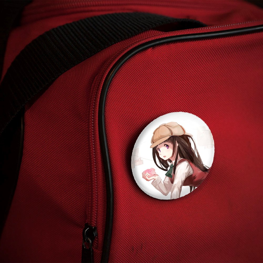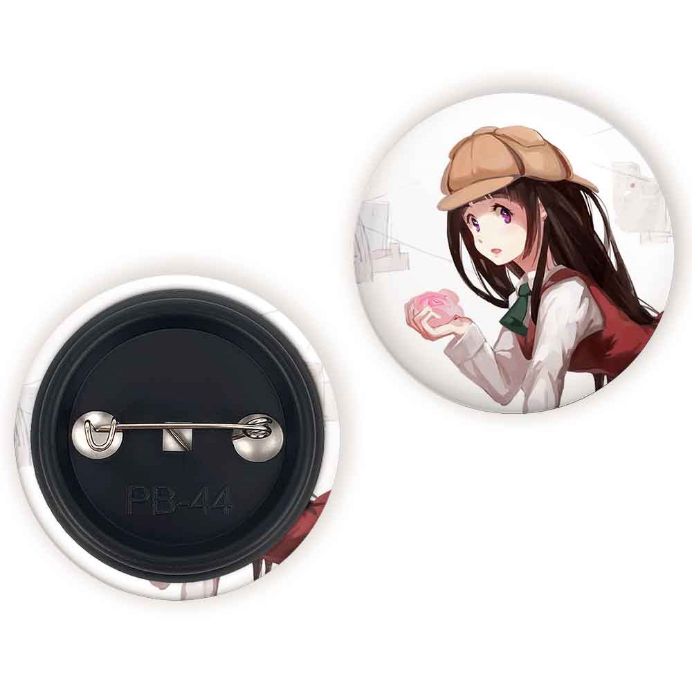 پیکسل 44 میلی متری چیتاندا انیمه هیوکا Hyouka خندالو با روکش سلفون حرارتی مات مخملی ضدخش و قطعه پشتی رنگی تولید شده است.پلاستیکی پشت پیکسل با سوزن یک تکه ثابت و بدون لغزش و جا به جایی، ایستایی بسیار بهتری نسبت به پشتی فلزی پیکسل دارند که این مهم در تولید این محصول نیز رعایت شده است.