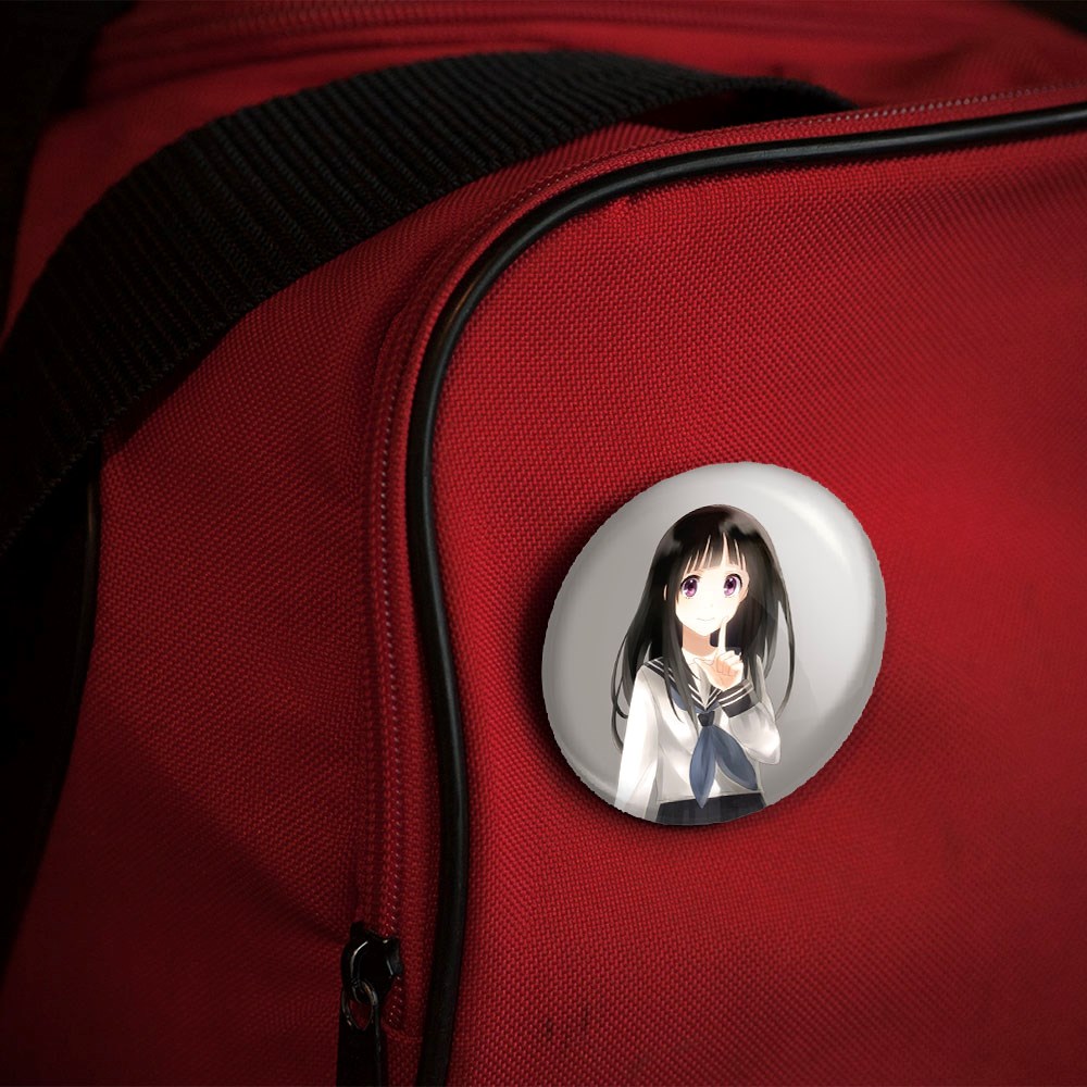 پیکسل 44 میلی متری چیتاندا انیمه هیوکا Hyouka خندالو با روکش سلفون حرارتی مات مخملی ضدخش و قطعه پشتی رنگی تولید شده است.پلاستیکی پشت پیکسل با سوزن یک تکه ثابت و بدون لغزش و جا به جایی، ایستایی بسیار بهتری نسبت به پشتی فلزی پیکسل دارند که این مهم در تولید این محصول نیز رعایت شده است.
