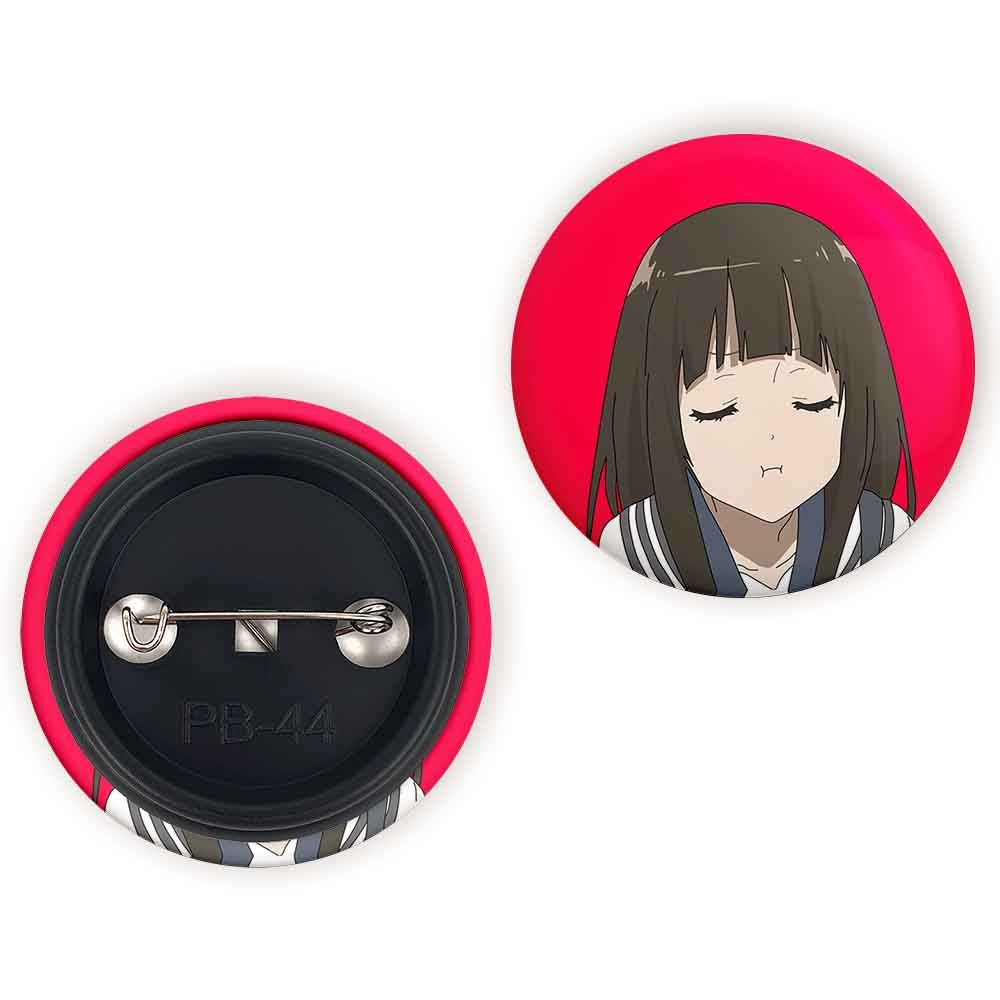 پیکسل 44 میلی متری چیتاندا انیمه هیوکا Hyouka خندالو با روکش سلفون حرارتی مات مخملی ضدخش و قطعه پشتی رنگی تولید شده است.پلاستیکی پشت پیکسل با سوزن یک تکه ثابت و بدون لغزش و جا به جایی، ایستایی بسیار بهتری نسبت به پشتی فلزی پیکسل دارند که این مهم در تولید این محصول نیز رعایت شده است.
