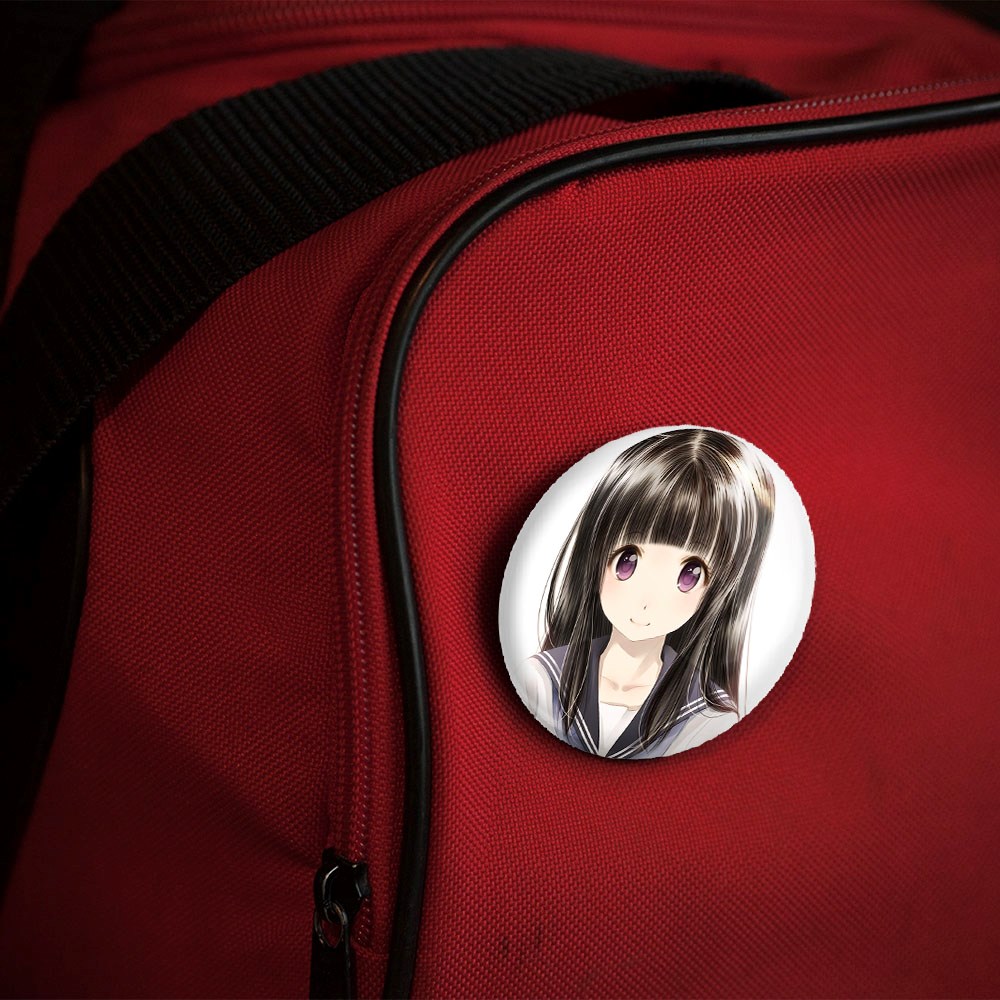 پیکسل 44 میلی متری چیتاندا انیمه هیوکا Hyouka خندالو با روکش سلفون حرارتی مات مخملی ضدخش و قطعه پشتی رنگی تولید شده است.پلاستیکی پشت پیکسل با سوزن یک تکه ثابت و بدون لغزش و جا به جایی، ایستایی بسیار بهتری نسبت به پشتی فلزی پیکسل دارند که این مهم در تولید این محصول نیز رعایت شده است.