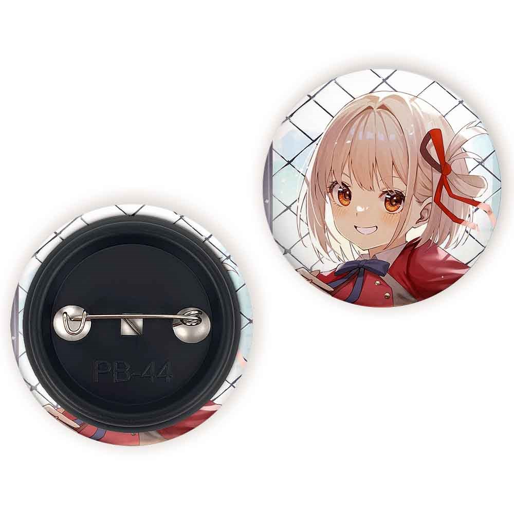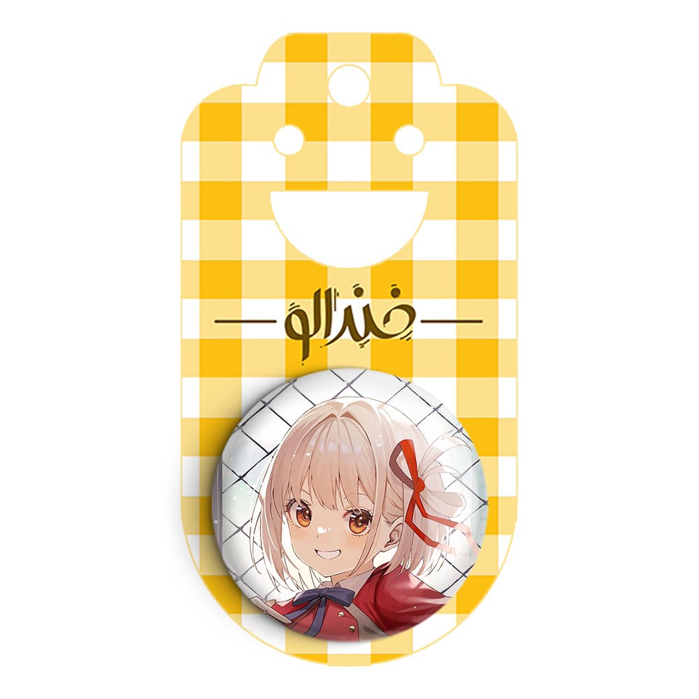 پیکسل 44 میلی متری چیساتو انیمه لیکوریس ریکویل Lycoris Recoil خندالو با روکش سلفون حرارتی مات مخملی ضدخش و قطعه پشتی رنگی تولید شده است.پلاستیکی پشت پیکسل با سوزن یک تکه ثابت و بدون لغزش و جا به جایی، ایستایی بسیار بهتری نسبت به پشتی فلزی پیکسل دارند که این مهم در تولید این محصول نیز رعایت شده است.